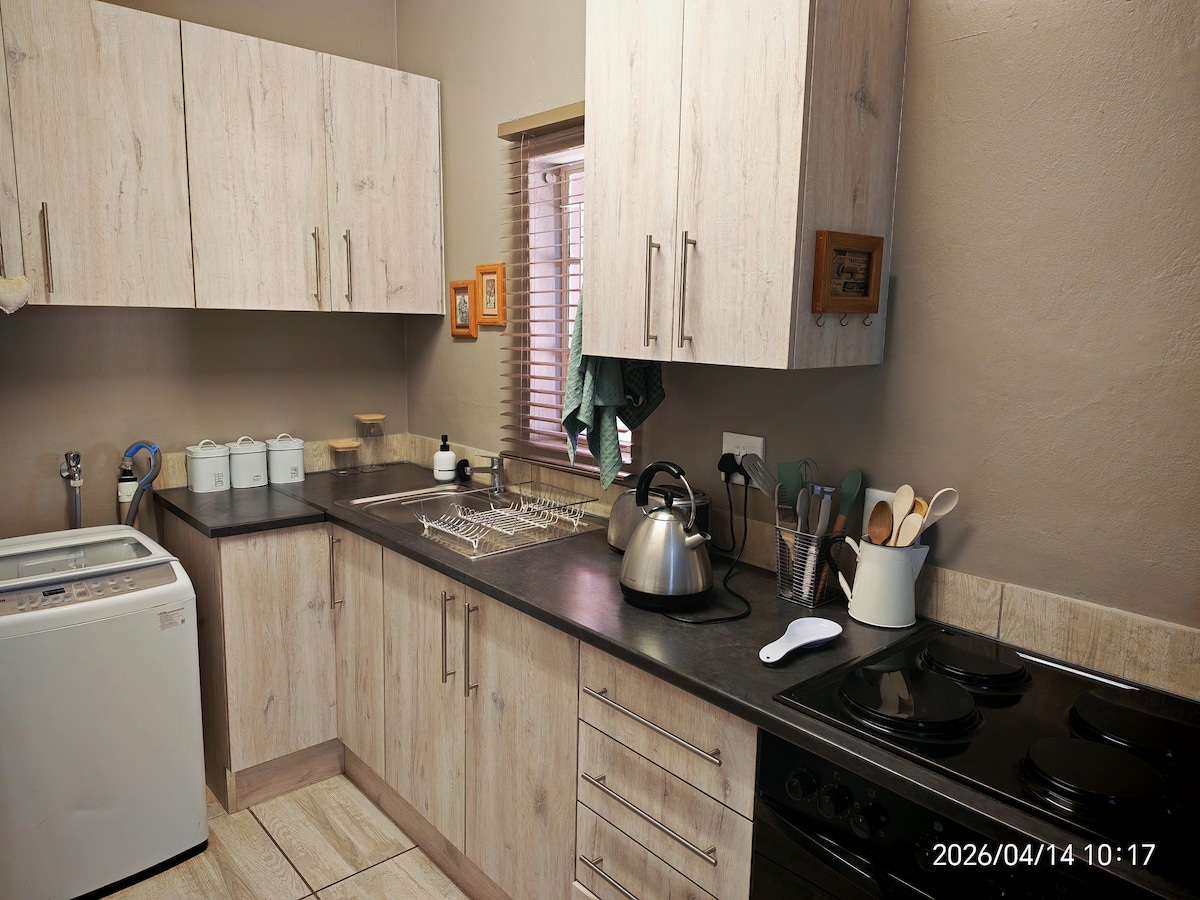 Restaurar la casa 1928, ambiente de tierras de cultivo en una zona tranquila con la seguridad necesaria, estacionamiento seguro, aire acondicionado, braaiarea privada. Cocina equipada.