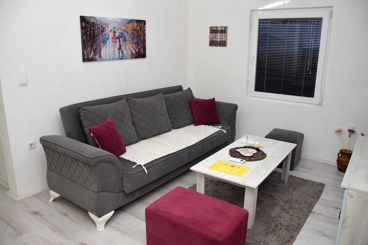 Nuestra casa tiene 4 apartamentos en el centro de la ciudad ,con 4 plazas de aparcamiento, patio trasero de 400m2, cámara de seguridad, alarma.Como puedes ver en las fotos todo es nuevo.El barrio es muy tranquilo y respetuoso.La piscina está a 30 metros de la casa y hay un tenis, canchas de baloncesto.Hay muchos supermercados cerca.También la vista es espectacular puedes ver las famosas Torres Markos.Garantizamos que somos la mejor opción para ti para tu estancia en Prilep.Estamos esperando...