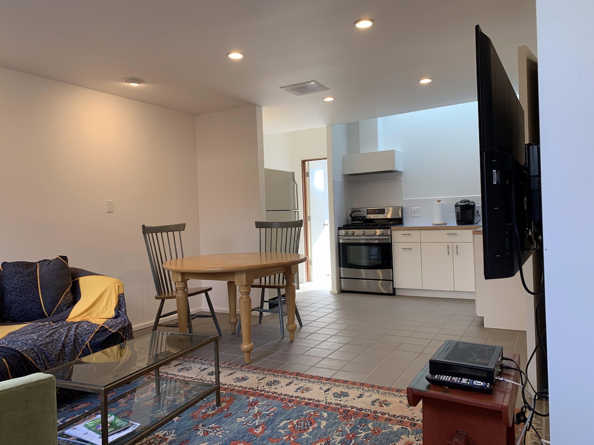 Esta suite con entrada independiente recién construida ofrece una comodidad acogedora y limpia. Tiene 250 pies cuadrados de espacio, pero está perfectamente distribuido para que todo lo que necesites esté allí sin sentirte abarrotado. Muchos de nuestros huéspedes vienen para pasar un fin de semana tranquilo y relajante o para trabajar a distancia en un lugar acogedor. Vivimos en la casa adjunta, pero el espacio que estás alquilando es completamente privado, con entrada privada y sin espacios compartidos. Hay una pared de ladrillo entre los espacios, ¡así que no te oiremos y tú no nos oirás!