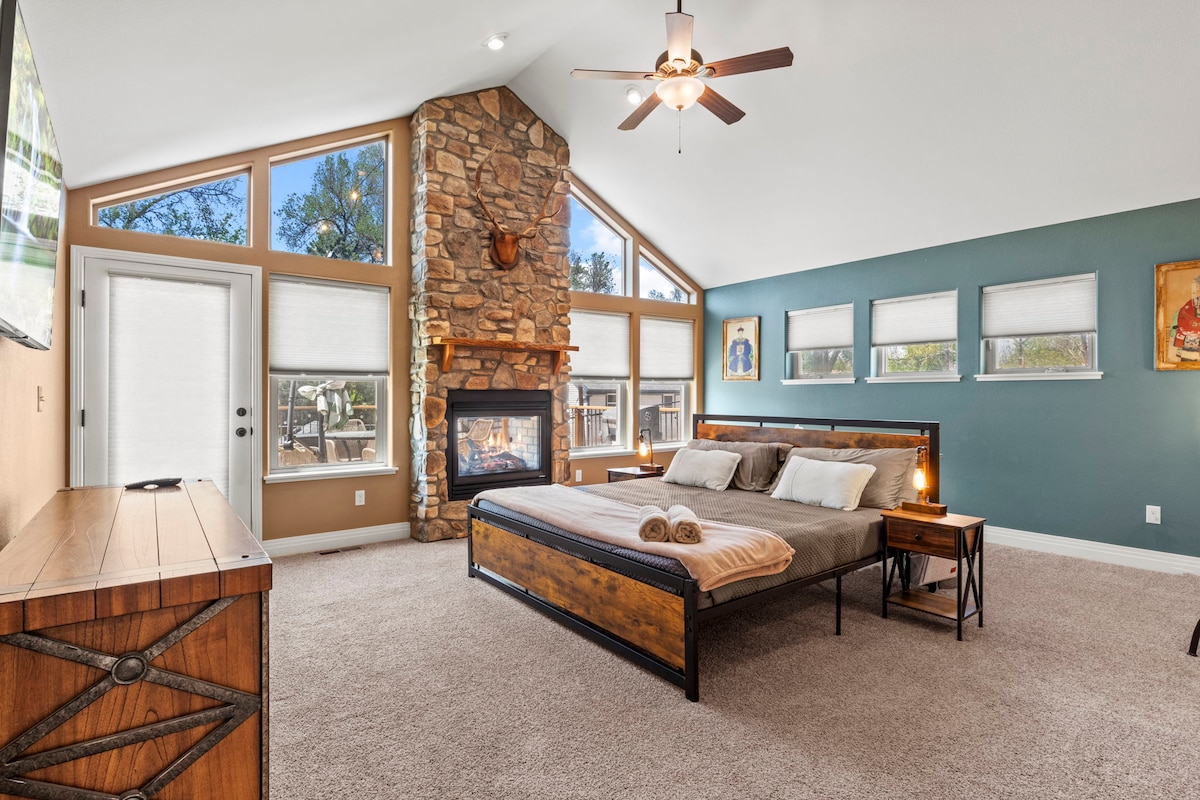 ★1 milla del centro de la ciudad ★A poca distancia en auto de CO College, Garden of the Gods, Pikes Peak, USAFA, UCCS ★JACUZZI para 4 personas ★PATIO AJARDINADO con CHIMENEA y PARRILLA ★Chimenea Smart TV de★ 55" con Samsung+ (canales básicos + aplicaciones) ★Cómoda cama TAMAÑO KING y cama tamaño queen ★Apto para familias: Pack 'n play, silla alta, juguetes, monitores para bebés y juegos de mesa WIFI ★RÁPIDO, área de hogar y escritorio G00gle para VIAJES DE NEGOCIOS ¡★Cocina equipada con gofres, Hario V60, prensa francesa, licuadora y más! ★Estacionamiento en la entrada ★Refresco de Colorado gratis
