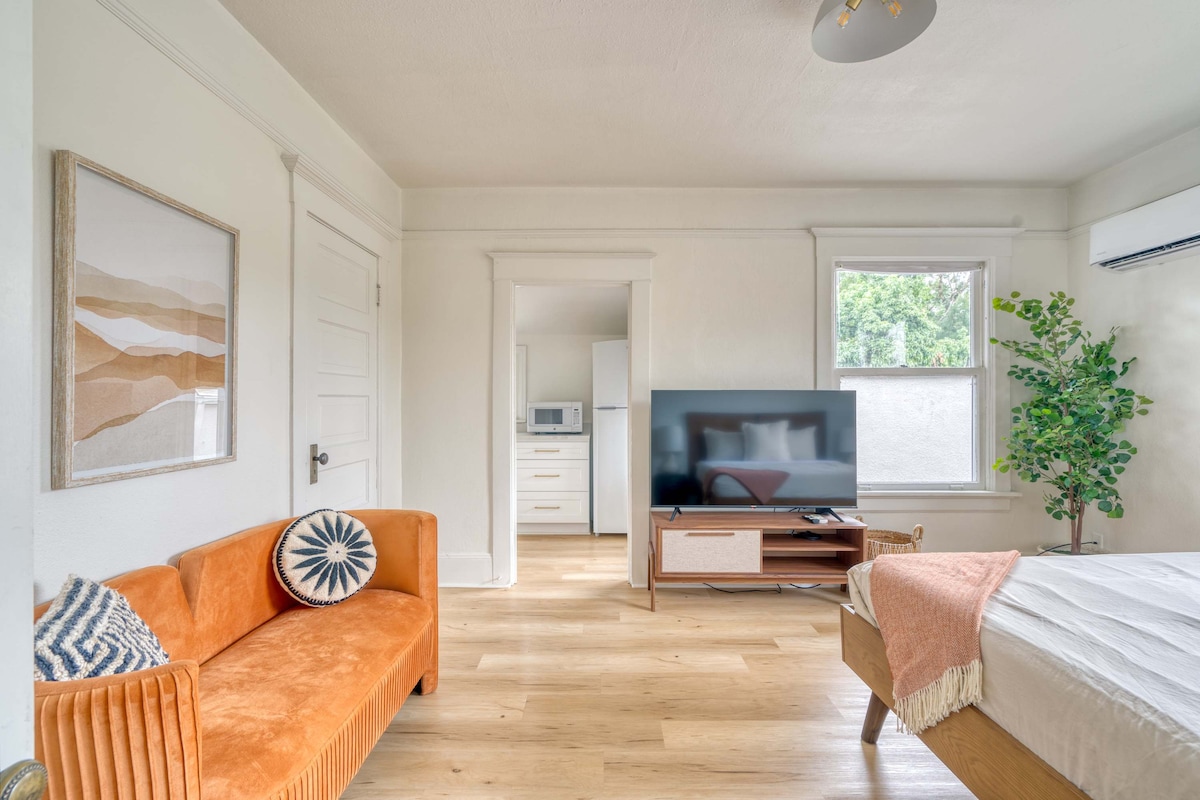 Inundada de luz natural, esta elegante suite combina el encanto atemporal con la comodidad moderna en uno de los mejores barrios de Portland. Ubicado justo al lado de NW 23rd Ave, disfruta de compras en boutiques, restaurantes de primera categoría y paseos arbolados justo al lado de tu puerta. En el interior, encontrarás un espacio de estar curado con un lujoso sofá, cocina completa, wifi rápido, televisor inteligente y una cómoda cama tamaño queen, perfecta para noches acogedoras o para recargar energías después de un día explorando la ciudad.