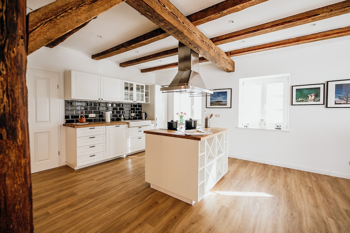 The lovingly furnished wooden house offers plenty of space for friends & family of 130 sq m. Away from the tourist hotspots, you can find peace & quiet in nature, on walks through the Bodden landscape, sunbathing on the terrace, cosily in front of the fireplace, with a view over the wide field where deer and cranes say good morning to each other. The nearest hotspots for water sports enthusiasts are just a few minutes away, the beautiful Baltic Sea beaches are 25 min away. Dogs are very welcome.