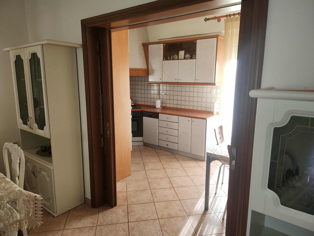 Apartamento de primera planta en una casa de dos plantas. Amplio yluminoso dormitorio de 2 dormitorios elegantemente amueblado con una terraza con capacidad para 4 huéspedes cómodamente. A 950 metros del centro de Ptolemaida. La ubicación del apartamento es ventajosa, ya que ofrece tranquilidad a pocos pasos de todos los servicios. Para amigos o parejas, familias o recién casados, para viajes de negocios o vacaciones.