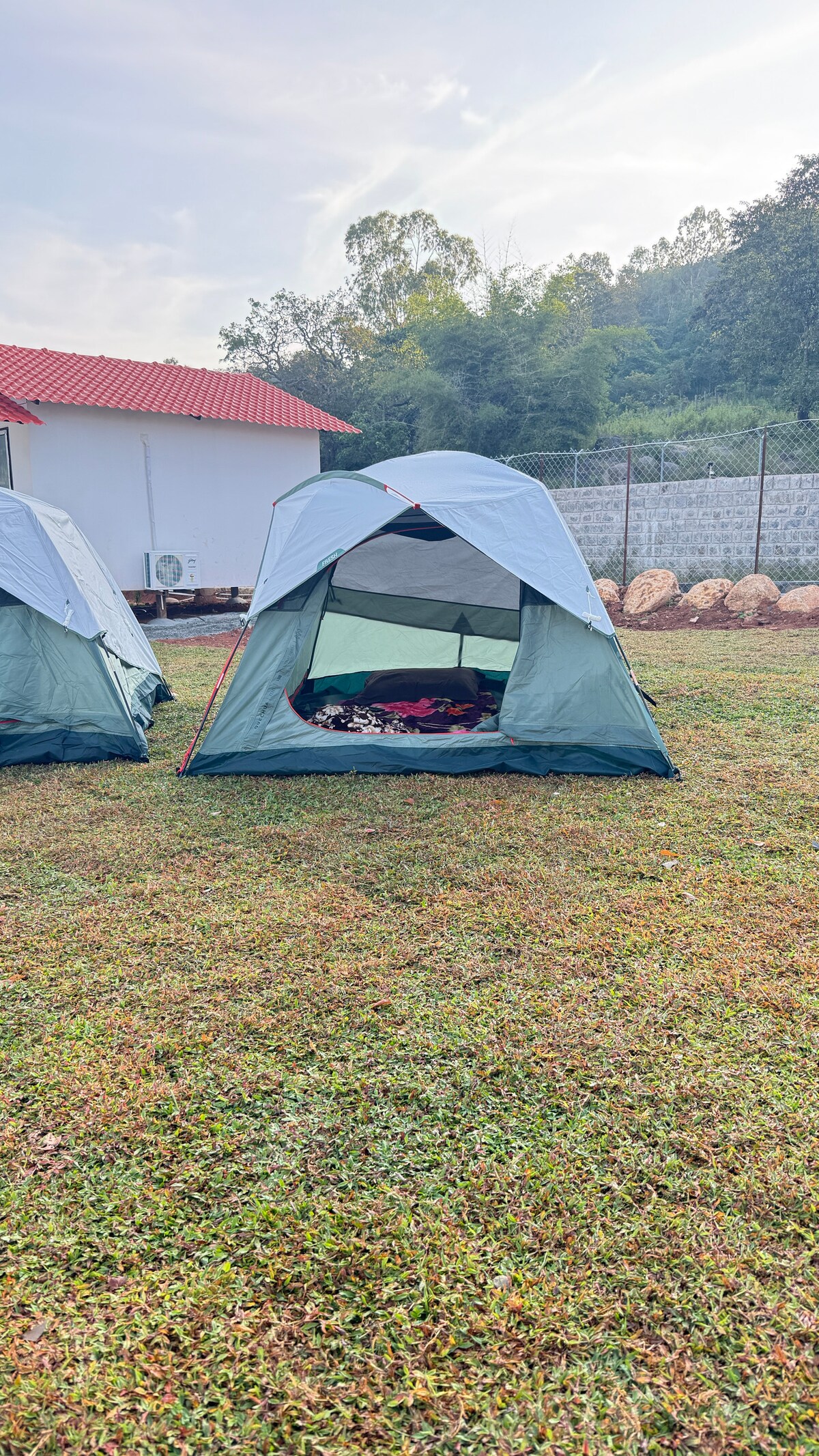 Green Garden Homestay se encuentra en el lugar de belleza escénica, Chundale, en el distrito de las colinas de Wayanad. Ofrecemos tiendas de campaña a los viajeros de aventura y senderismo, con capacidad para 3 personas en una tienda. La zona de refrescante/inodoro está cerca. También ofrecemos un descanso rápido de cortesía. Tenemos 2 tiendas de campaña y un máximo de 6 personas pueden dormir en estas dos tiendas. La tarifa por persona adicional se puede pagar en la propiedad. Ofrecemos una tienda de campaña para 3 personas ( hasta 3). Se proporcionarán dos tiendas de campaña para más de 3 personas.