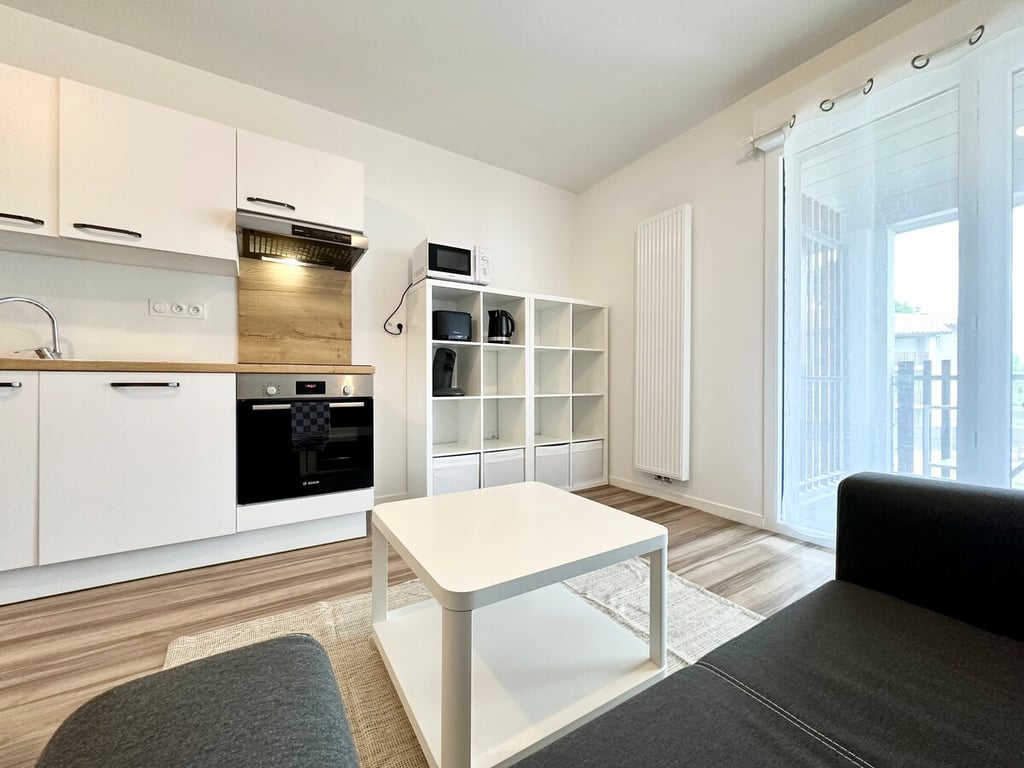 Espacio reformado, 35 m2: - gran dormitorio / sala de estar - cocina equipada independiente contigua - cuarto de baño con ducha + aseo Casa residencial tranquila, cerca del centro de la ciudad, supermercado. Su espacio está en la planta baja, nosotros vivimos arriba. La habitación da a una gran terraza a su disposición para los días soleados. Café - té - infusiones disponibles. Conexión WiFi NO FUMADORES - por favor, vaya a la terraza. ¡Estaremos encantados de asesorarle durante su estancia!