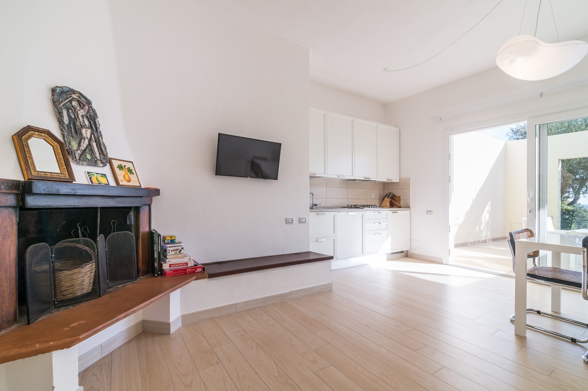 Inmersa en un verde pinar de una residencia privada a 100 metros de una espléndida playa y a 10 minutos en coche de las famosas playas de Chia. La playa está compuesta por granos de arena blanca con reflejos rosados, mientras que el agua tiene poca profundidad, por lo que es un destino ideal para familias con niños. Parque de aventuras para niños y adultos, puerto turístico cercano. Mercado, estanco, bar y quiosco a 50 metros. También es interesante fuera de temporada como punto de partida para actividades deportivas.