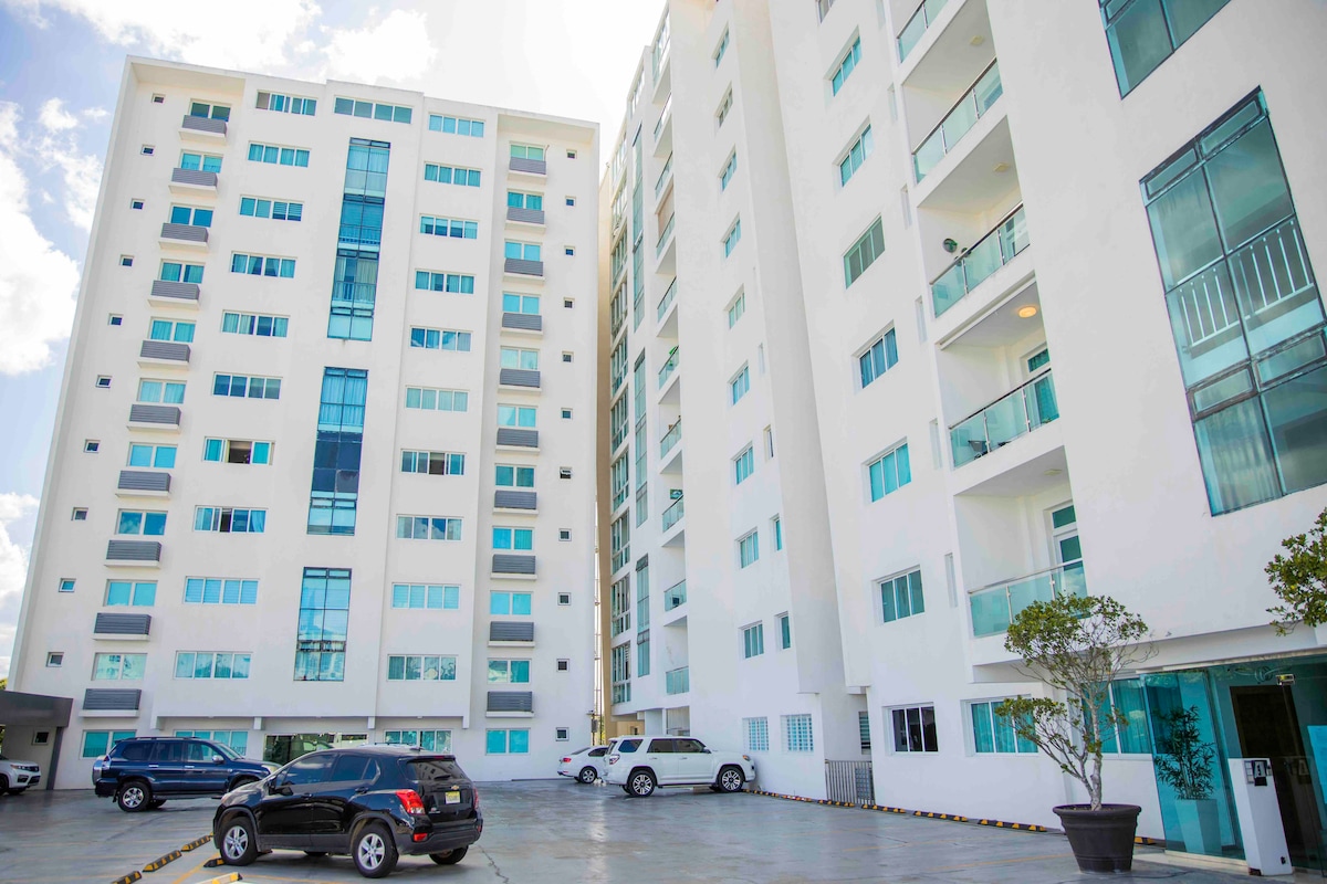 Nuevo y moderno apt, espacio cómodo y bien iluminado Cocina bien equipada y un baño limpio y espacioso, Parqueo privado y seguro con seguridad 24/7. , localizado a 10 min del Aeropuerto, centro de ciudad ect perfecto para disfrutar de un espacio comodo y tranquilo con toda su familia equipado con 3 dormitorios con tv wifi y aire acondicionado, Tenemos salon de eventos privados, piscina, villar, gimnasio, area de BBQ, area de juego para niños, cancha de basketball, wifi.