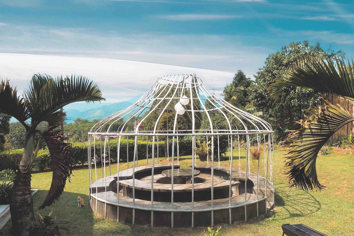 @di.alaya se encuentra en las tierras altas de Sentul KM0, a solo una hora en coche para que puedas escapar de la concurrida Yakarta. Tenemos un entresuelo, 2 dormitorios con un concepto de plan abierto, 2 baños, una cocina y una terraza abierta con una gran vista disponible desde casi todas partes de la casa. NO hay aire acondicionado. Hecho para 4 personas, tiene capacidad para 6. Se cobrará a huéspedes adicionales. No es seguro para niños menores de 12 años. SOLO SE ADMITEN MASCOTAS A LOS PROPIETARIOS RESPONSABLES.