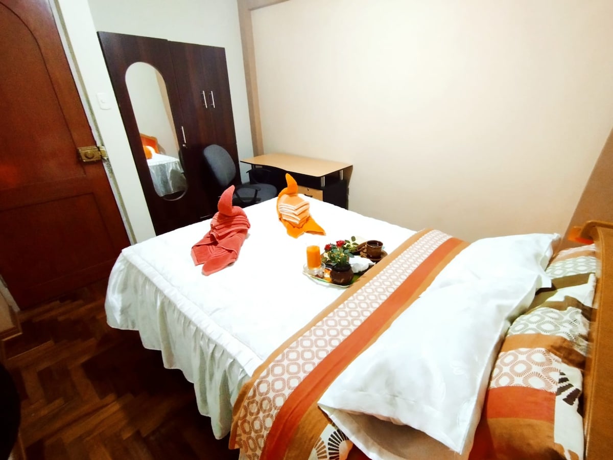 Lindo mini departamento con entrada independiente sala comedor TV y Netflix cocina que cuenta con lo necesario,wifi de alta velocidad . Recojo en auto gratuito del terminal terrestre o zonal en Puno. Realizamos recojo en aeropuerto de Juliaca con un costo adicional.
