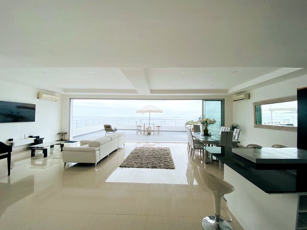 Has que tu estadía sea diferente y placentera, nuevo y elegante departamento frente al mar, con un ambiente moderno y una excelente ubicación. Disfruta de una espectacular vista en la terraza donde puedes aprovechar el jacuzzi, la piscina, el gimnasio o incluso finalizar el día con un mágico atardecer. Contamos con un parqueo privado y servicio de guardia durante toda tu estancia. Estamos totalmente predispuestos para solventar todas tus exigencias.