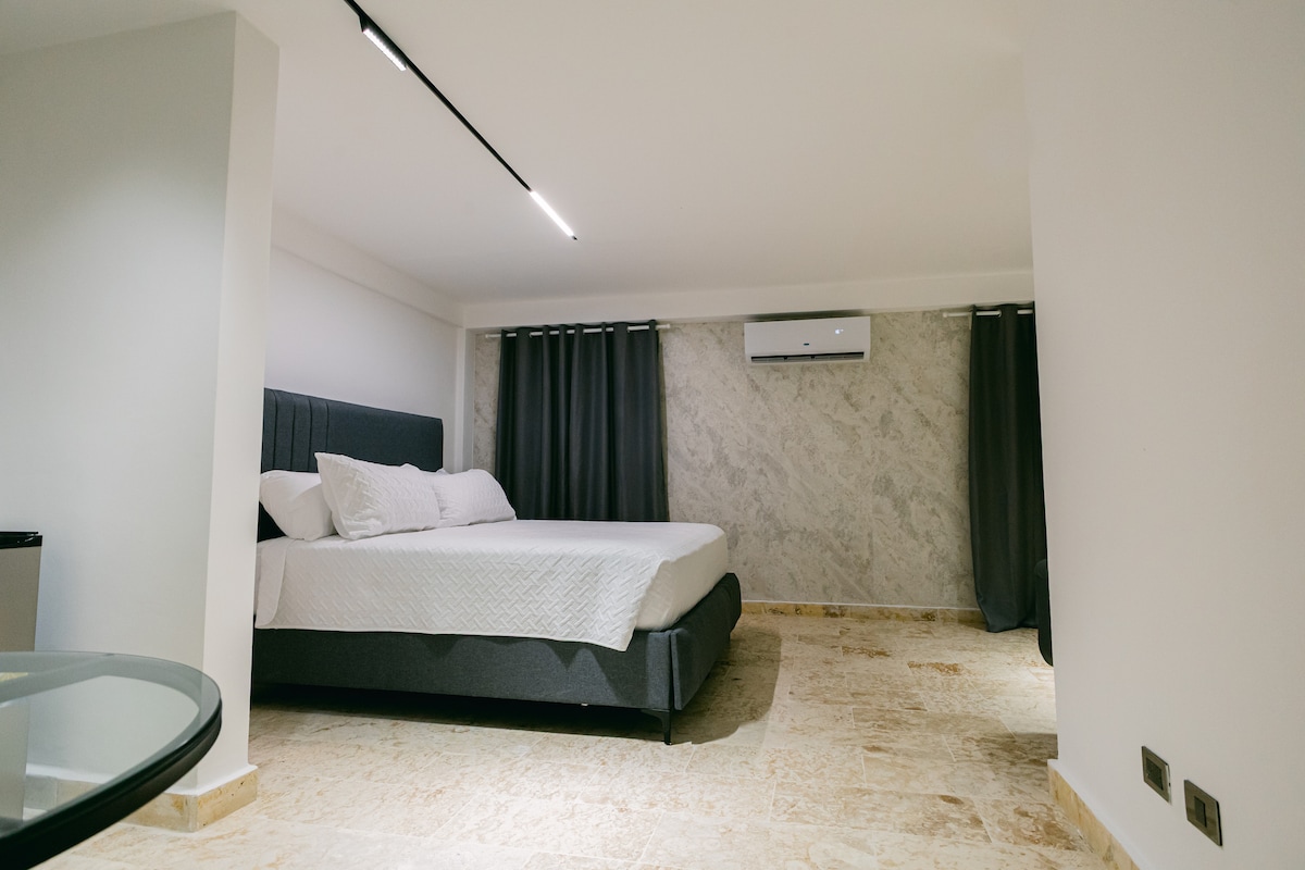 Esta habitación de hotel tiene capacidad para 2 personas. Cuenta con cama queen, cocina equipada y baño privado. También incluye aire acondicionado. La propiedad está a 4 minutos caminando de la playa. Situado en Punta Cana, a 250 m de la playa Arena Gorda y a 300 m de la playa de Bávaro. Se encuentra a pocos pasos de muchos restaurantes y bares. El wifi tiene un mínimo de 50 Mbps en toda la propiedad. Estamos en un callejón más tranquilo, un camino de tierra sin salida. La electricidad está incluida en tu estadía, sin costo adicional.