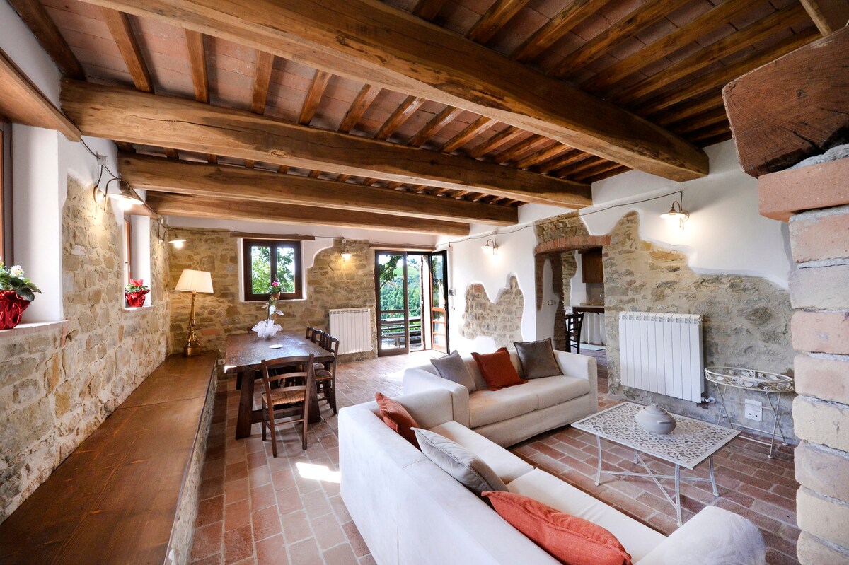 Casa de campo de piedra en una tranquila ladera a solo 10 minutos a pie de la medieval Panicale. Amplias vistas al lago Trasimeno, 2 dormitorios dobles, 2 baños completos + 1 aseo, cocina completa, wifi, lavandería y aparcamiento privado gratuito. Una base tranquila y cómoda para explorar Umbría y la cercana Toscana