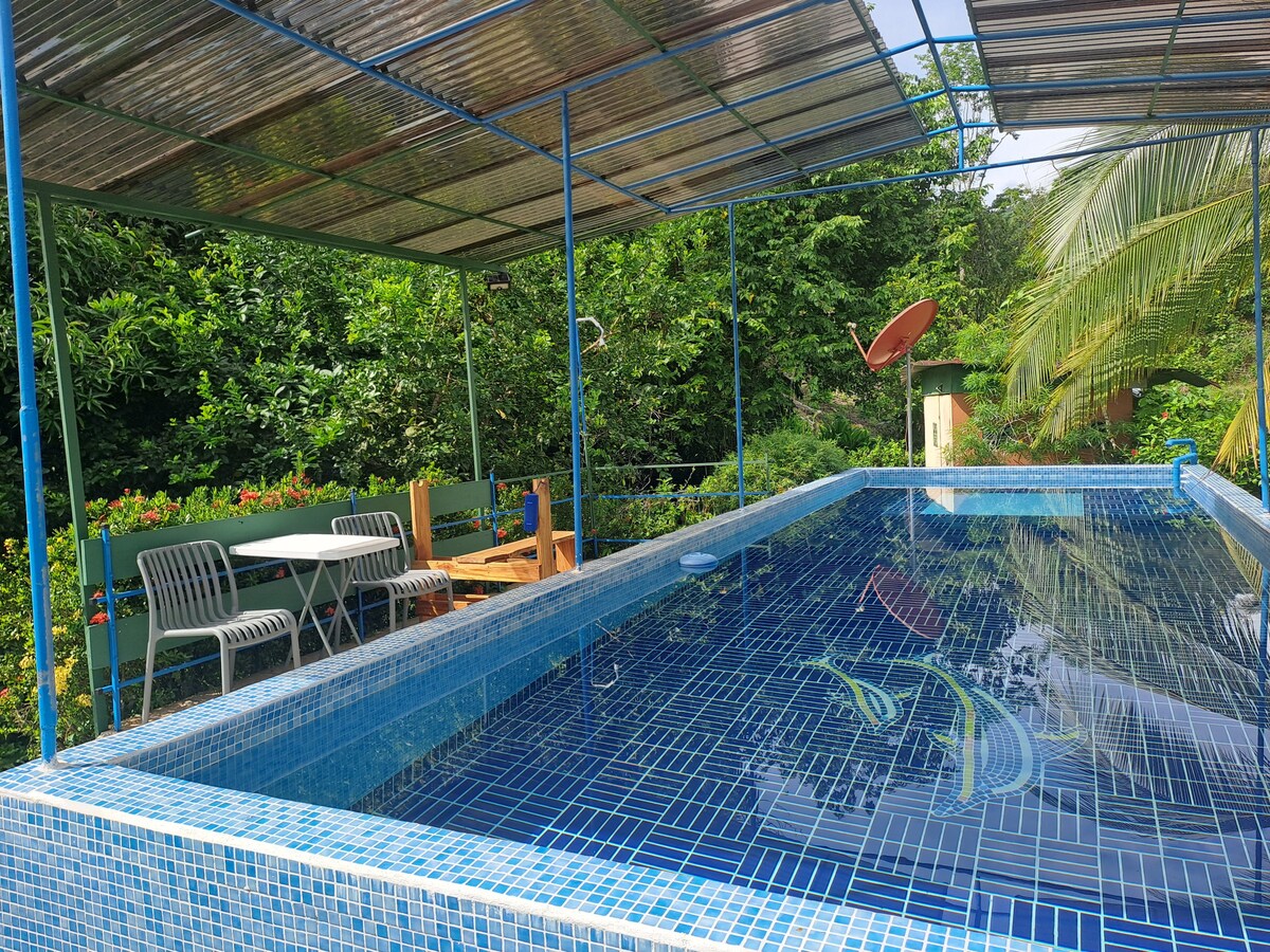 Authentic Costa Rican Village, relax with the whole family and enjoy the freshness of nature, the beautiful pool and a spectacular view of the Central Valley. Explore our property and discover different species of birds, butterflies, iguanas and more. Have a good time outside and enjoy of the hammock, the covered outdoor BBQ and eating area.