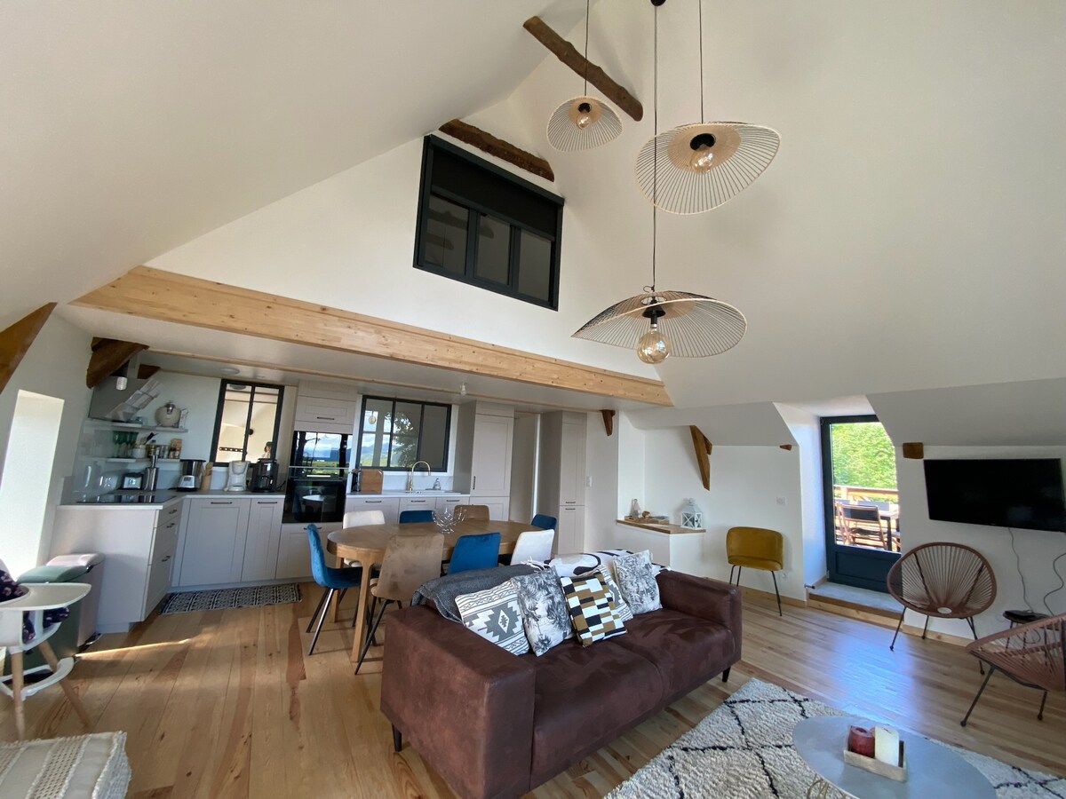 Escápese por un fin de semana o para las vacaciones en esta encantadora casa de campo en medio de la naturaleza. Antiguo granero transformado en una casa de campo de gran comodidad de 5 estrellas y eco-responsable. * Grandes ventanales, terraza y jardín con magníficas vistas de los volcanes de Auvernia. * Equipamiento de lujo: 2 suites (incl. SDD, inodoro,...), un dormitorio (incl. 1 cama 200x200), una sauna al aire libre con vistas a los volcanes (a partir de mediados de septiembre de 2024),... * Ecoresponsable: Calefacción geotérmica, fitodepuración…