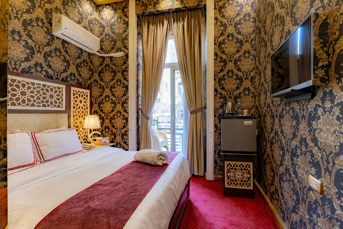 ¡Alójese en el Golden Star Hotel en el centro de El Cairo! 🏨 Estarás a solo unos pasos del Museo Egipcio, el Nilo y el metro. Tu habitación ofrece una cómoda cama🛏️, baño privado🚿, balcón con vistas a la calle, aire acondicionado ❄️y conexión wifi gratuita📶. Con asistencia en recepción las 24 horas🛎️, sábanas limpias y personal amable listo para ayudarte, tendrás todo lo que necesitas para explorar El Cairo, disfrutar de la comida local 🍲y sentirte como en casa mientras descubres la cultura y la historia de la ciudad✨.