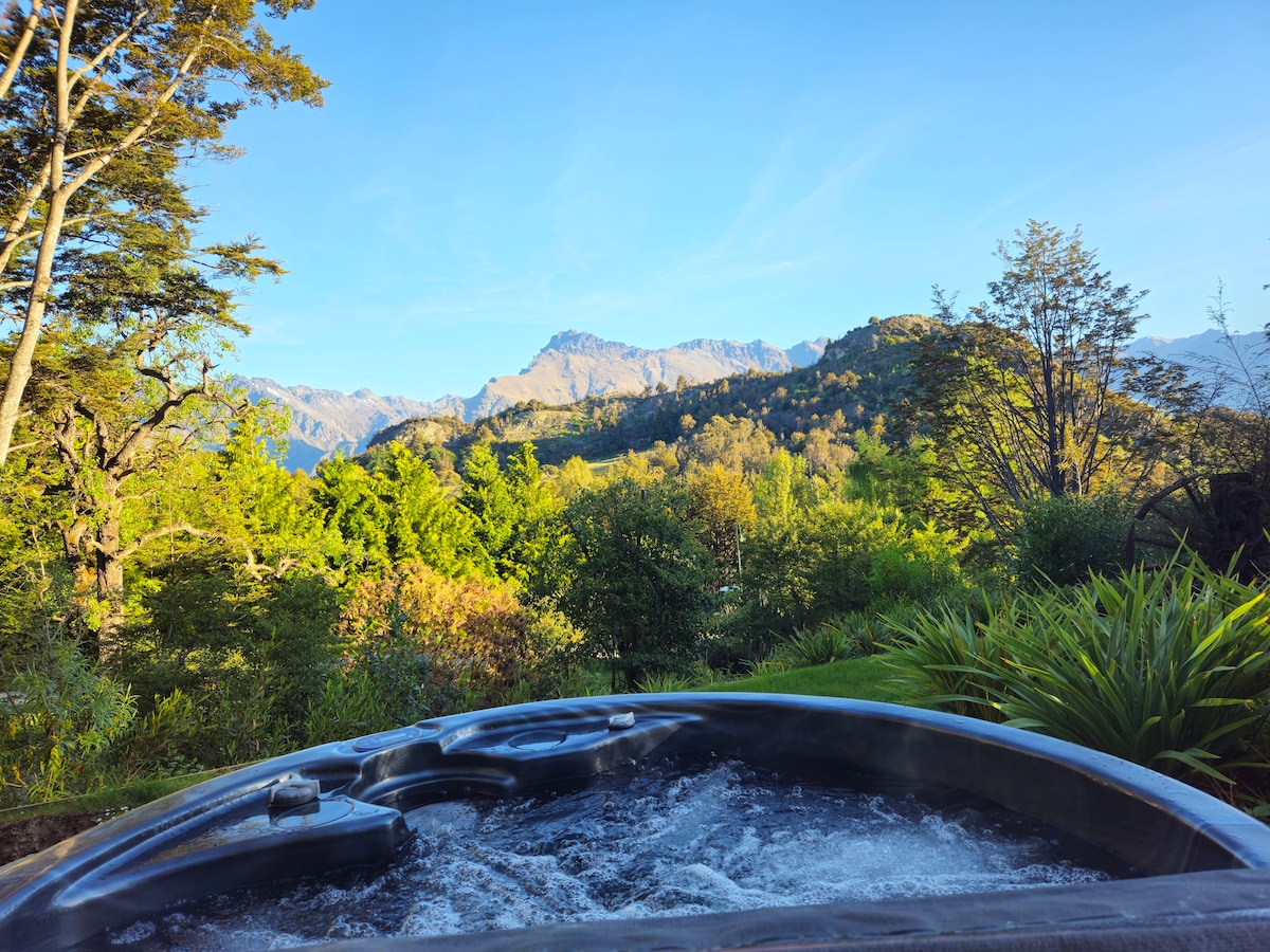Gorgeous stand-alone bungalow with private hot tub. Luxe designer interiors to enjoy your holiday in comfort & style. Majestic mountain and lake views from the balcony, lounge, 2 bedrooms, and kitchen. A quick walk to the heart of Queenstown's vibrant city centre. Open plan living with incredible indoor outdoor flow. Large, sunny, backyard & garden with outdoor dining set perfect for families, big groups & activities or relax on the front balcony & soak up iconic QT mountain and lake views.