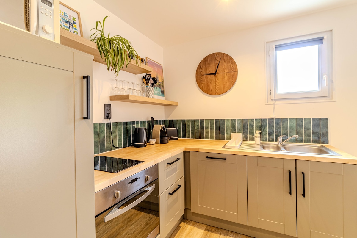 Apartamento luminoso con terraza cubierta y jardín privado, ubicado en la planta baja de una casa con acceso privado y sin vistas a los vecinos. A solo 10 minutos a pie del centro de la ciudad de Quimper, disfruta de una vista clara de la ciudad en un entorno tranquilo. Perfecto para 4 personas, el departamento cuenta con: 🛏️ De 1 dormitorio con cama tamaño queen 🛋️ 1 cómodo sofá cama 🍽️ Cocina totalmente equipada 🚿 Un baño moderno 🌳 Una terraza cubierta + jardín privado con comedor al aire libre y barbacoa.
