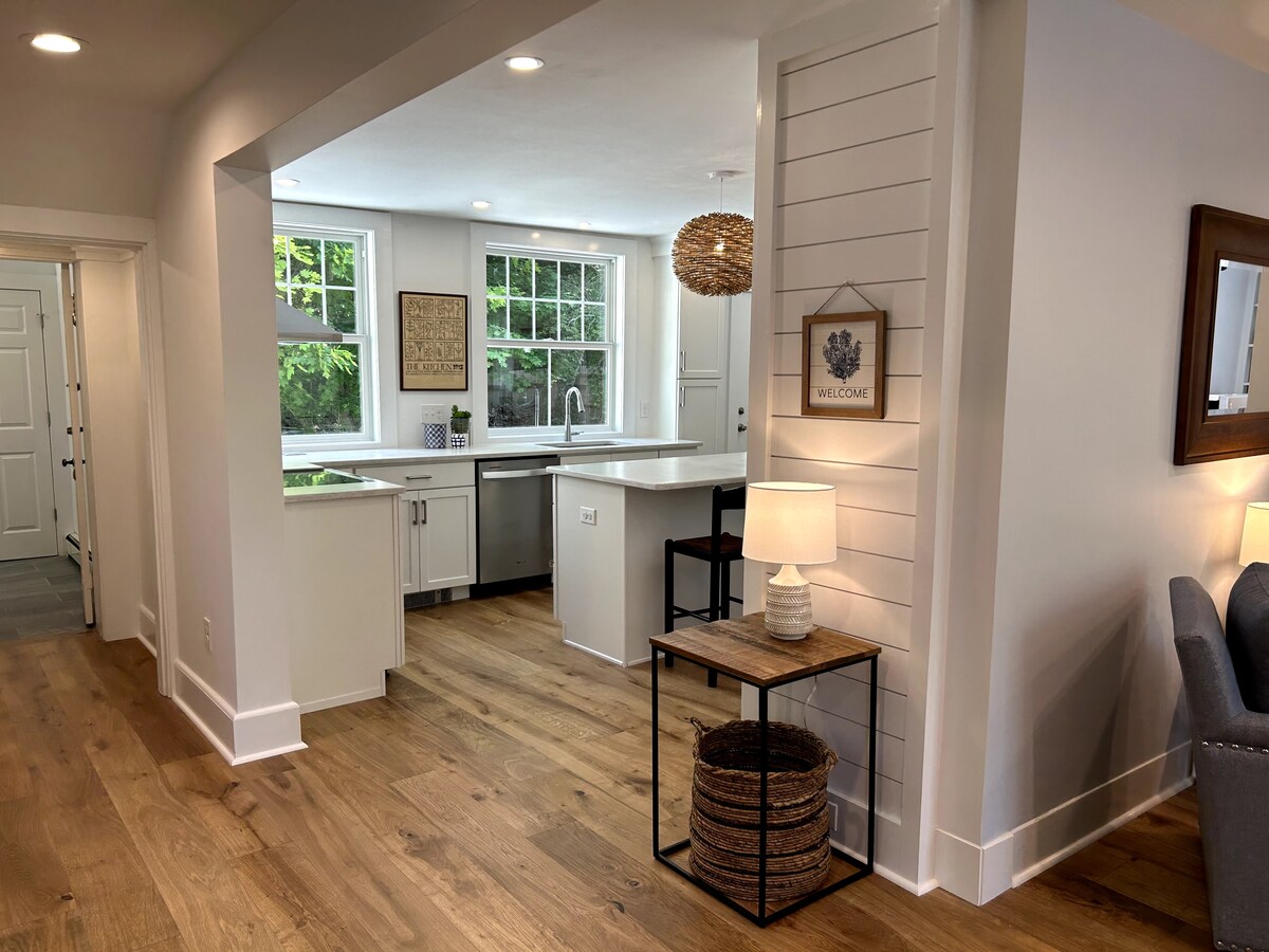 Esta es una casa de campo de dos dormitorios completamente reformada. Tres televisores inteligentes de pantalla plana. Wifi. Azulejos por todas partes. Esta unidad es llave en mano y está totalmente equipada. Hay una sala de estar exterior, un amplio patio trasero privado que incluye una parrilla de gas. La cocina está bien equipada e incluye salpicadero de azulejos, electrodomésticos de acero inoxidable, encimeras de cuarzo y mucho más. Estamos a media manzana de la calle principal, a dos manzanas del puerto y de los transbordadores de Martha's Vineyard. También estamos a menos de una milla del mar.