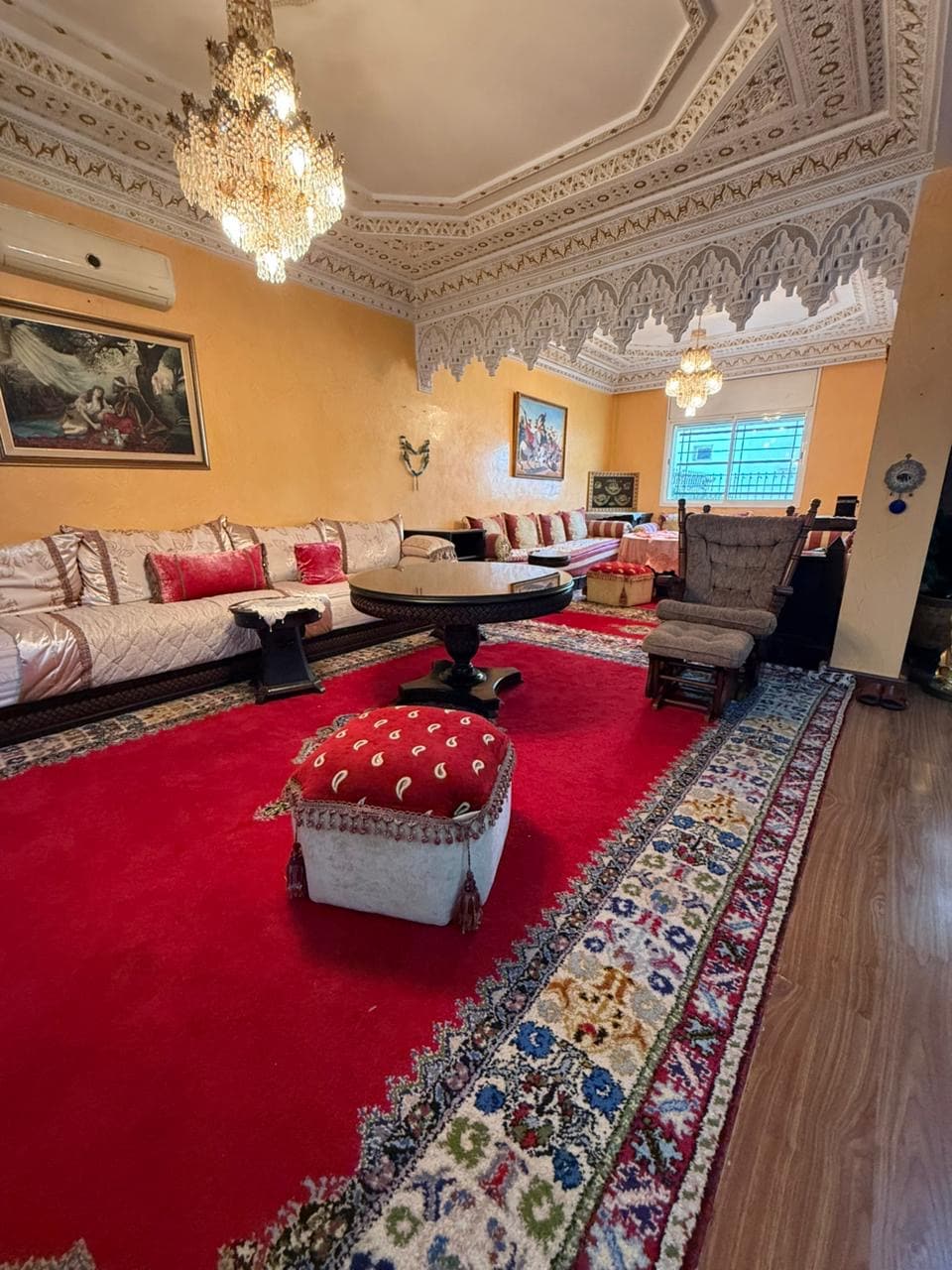 Dentro del barrio Souissi, el más prestigioso de Rabat, se encuentra un santuario de lujo de 260 metros cuadrados en el prestigioso complejo Place Des Zaers. Este elegante refugio ofrece una decoración vibrante, amplias salas de estar, una cocina totalmente equipada y un jardín sereno para relajarse. Con aparcamiento subterráneo seguro y servicios opcionales de limpieza y cocina a petición, y a solo minutos del Royal Golf Dar Essalam, promete una mezcla excepcional de comodidad y sofisticación para una estancia verdaderamente refinada en la ciudad.