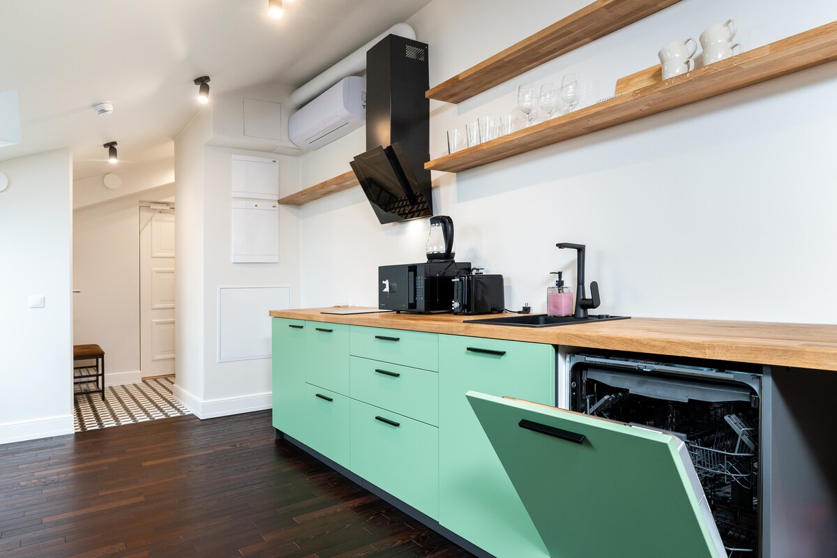 Modern 50 m² apartment in Tallinn's city center, featuring a private gym, dedicated workspace, and air conditioning. Enjoy seamless self-check-in, a fully equipped kitchen and bathroom, and adjustable underfloor heating. Located near public transport and Tallinn bus station, with top attractions like Tallinn Old Town and Kadriorg Park easily accessible. Book your stay now for comfort and convenience in the heart of Tallinn! The SmartStay Estonia team welcomes you!