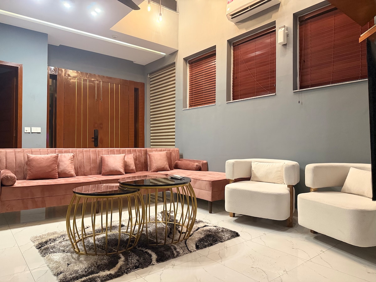 ¡Te damos la bienvenida a tu acogedor retiro! El apartamento BHK más seguro y tranquilo de Bahria Town Lahore Ideal para parejas, familias, aventuras en solitario o viajeros de negocios. En el interior, encontrarás una sala de estar bien equipada, una cocina totalmente equipada y un acogedor dormitorio. Cuenta con comodidades como wifi, aire acondicionado, TV inteligente y ventilador de pared. Ropa de cama y toallas limpias. Disfruta de la comodidad de estar cerca de todos los restaurantes y servicios a poca distancia.
