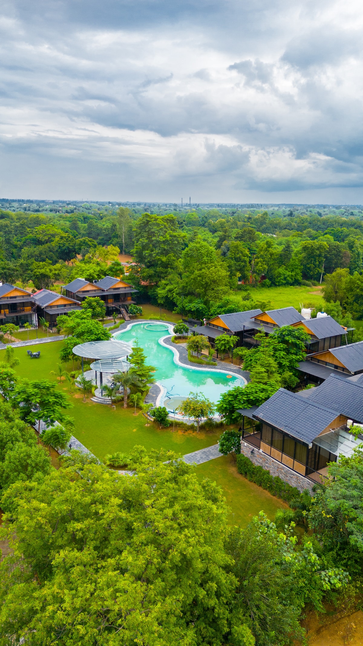 Tucked in a peaceful forest resort near Mini Ladakh, this charming cottage offers a serene retreat with modern wooden interiors & vaulted ceilings It opens to a private balcony with scenic views of the lush garden & pool, ensuring complete relaxation The resort offers an unparalleled experience with a shared pool & gazebo, a state-of-the-art gym, & a multi-cuisine restaurant Guests can unwind in the sauna, challenge themselves in the game zone, or lose themselves in a book at the serene library