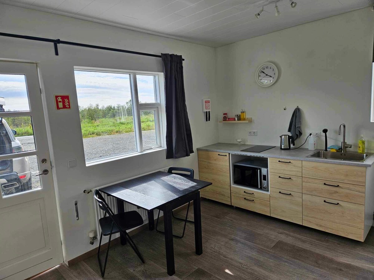 El cobertizo está totalmente renovado y tiene un ambiente cálido y acogedor. Situado en una granja en funcionamiento lejos del tráfico y de las zonas densamente pobladas. El cobertizo tiene capacidad para cuatro personas y cuenta con comodidades modernas. El cobertizo es perfecto para familias o dos parejas que viajan juntas. Es una base ideal para viajar por el sur de Islandia con una selección de excursiones que puedes hacer por tu cuenta, por ejemplo, el Círculo Dorado, la Costa Sur, Þjórsárvalley, etc. También hay muchas empresas turísticas que operan en esta zona.