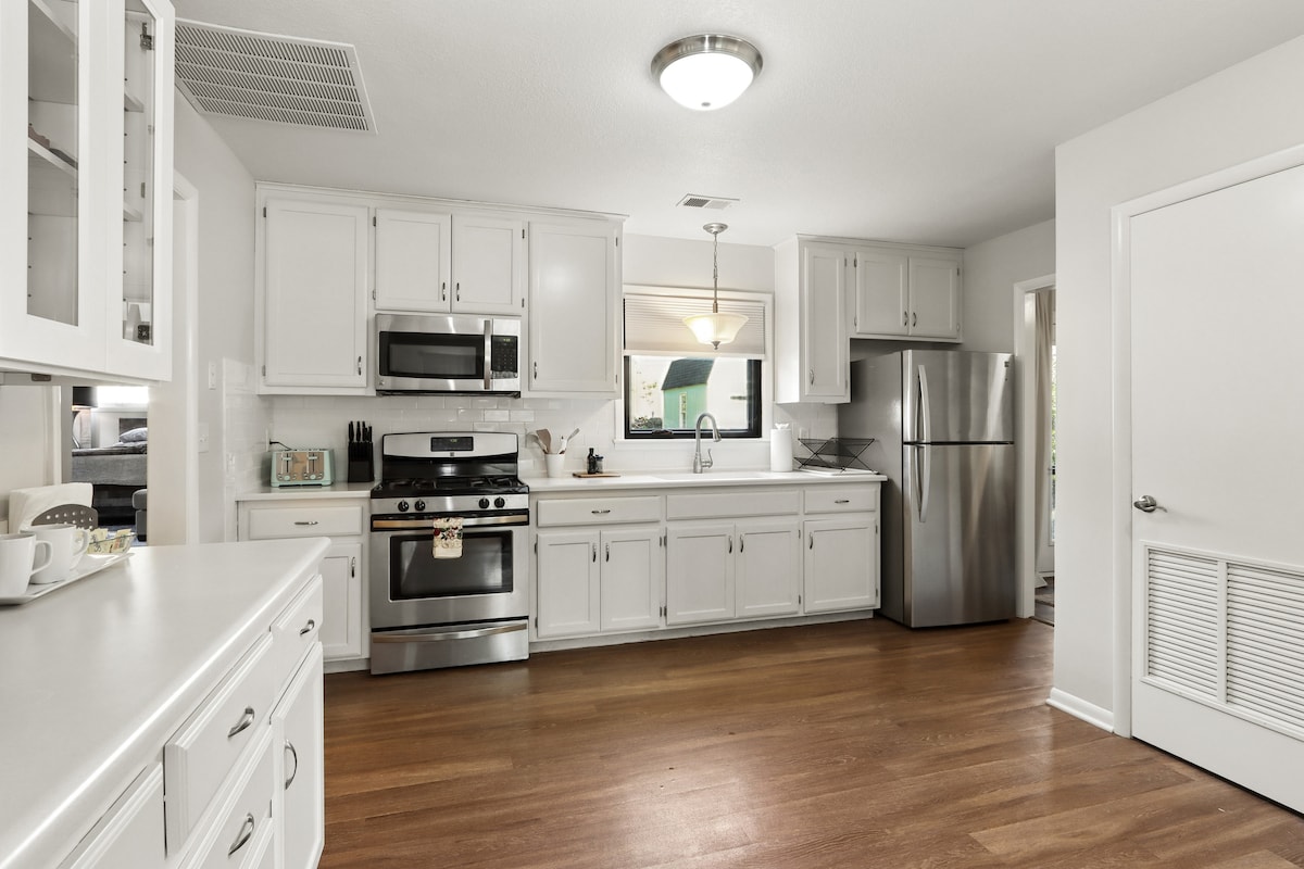 Trae a toda la familia, incluidas las mascotas, a este alojamiento cuidadosamente remodelado. Ubicada frente a la Universidad de Ottawa, esta casa de 4 dormitorios y 2 baños cuenta con un encantador solárium, un espacio adicional y un gran patio trasero cercado. La casa se encuentra aproximadamente a 1,5 millas del recinto ferial del condado de Franklin (Celebration Hall), a media milla del Prairie Spirit Rail Trail y a una milla del centro de Ottawa y del Auditorio Municipal de Ottawa. KU-30 min MCI-75 min KC/Kauffman/Arrowhead Stadium-1 hora