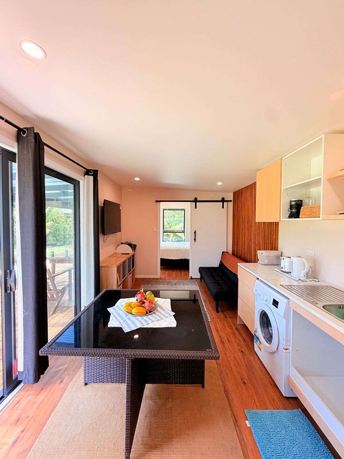 Sumérgete en la calidez de este moderno estudio, hermoso y acogedor interior con cocina completa. Esta propiedad tiene grandes cubiertas privadas. Zona residencial muy tranquila sin salida que da al bosque tropical nativo con mucha vida de aves autóctonas. Los árboles de mango silvestres corren por un pequeño arroyo en el lado sur de la propiedad, que puedes recoger y comer cuando estén en temporada, tenemos plátanos, limones, árboles del pan, guanábana, solo por nombrar algunos en la propiedad que estamos encantados de compartir.