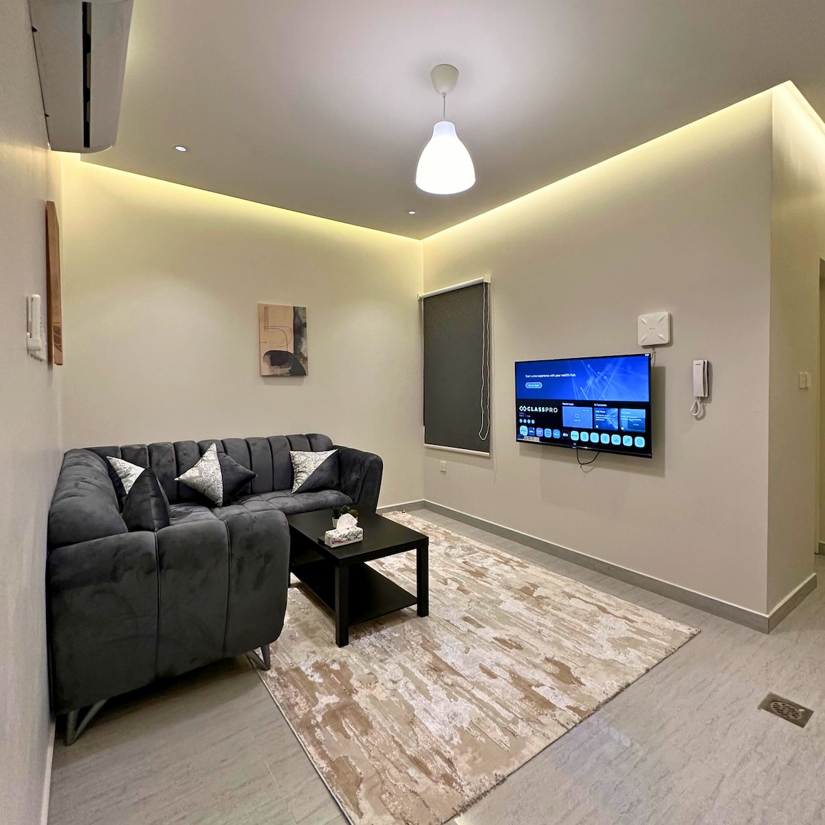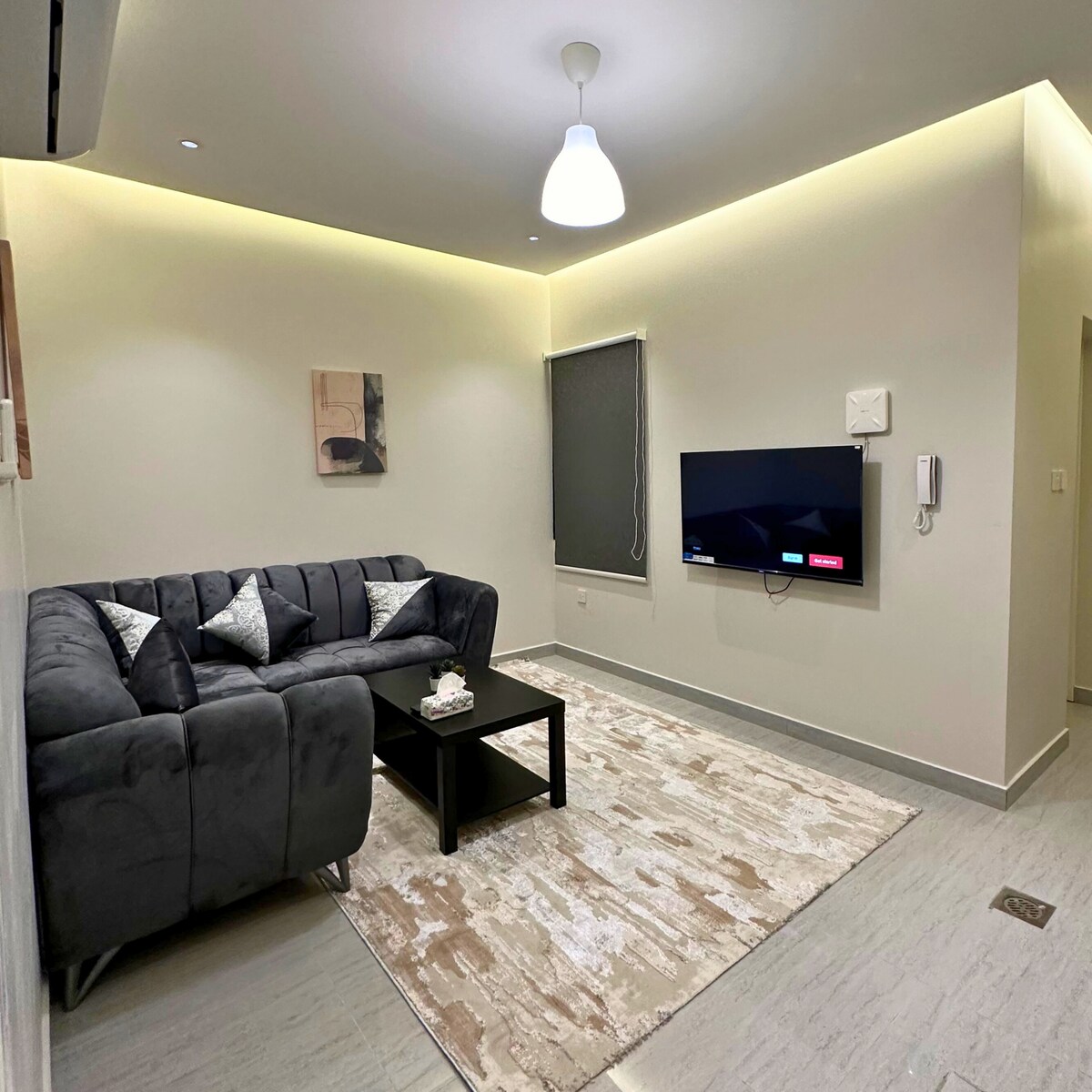 Disfruta de una estancia de lujo en este acogedor departamento de una habitación con una elegante sala de estar, baño y zona de cocina totalmente equipada. Mantente conectado con wifi gratuito y relájate con Netflix y Shahid. El dormitorio cuenta con una cama cómoda y un armario para el almacenamiento. Situado en una zona privilegiada, es perfecto para la relajación y la comodidad. Tanto si vas a visitar por negocios como por placer, este moderno espacio ofrece todo lo que necesitas para disfrutar de una estancia cómoda y agradable.