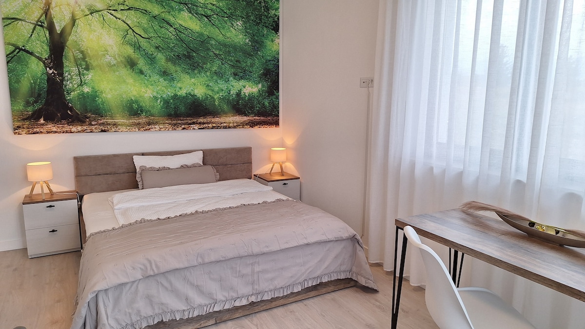 Situat in centrul orasului , Studio , 35mp ,compus din dormitor cu pat dublu mare, baie proprie si bucatarie. Ideal pentru cupluri sau o singura persoana. Capacitatea maxima este de 2 locuri. Bucataria este dotata cu plita electrica, cuptor cu microunde, fierbator apa, espressor cafea, frigider . WI-Fi gratuit, TV. Oaspetii nostri beneficiaza gratuit de acces in sala de fitness.Locurile de parcare din fata imobilului sunt gratuite.