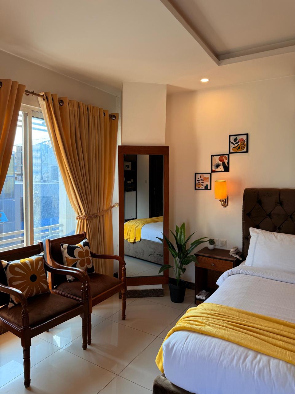 Entra en los apartamentos de 3 dormitorios de Flamingo Grand, los apartamentos con servicio más sofisticados y estéticamente emocionantes de Islamabad. Disfrute de una experiencia segura y con estilo en este lugar céntrico. Tanto si visitas Islamabad por placer como por trabajo, en Flamingo te aseguramos una experiencia de 5 estrellas. Los huéspedes también disfrutan de una plaza de aparcamiento gratuita y segura, wifi gratuito y la experiencia de ver sus series de televisión favoritas en el led inteligente de 65 pulgadas.