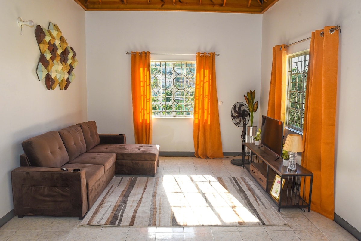 ¡Te damos la bienvenida a nuestro acogedor oasis en Bogue Village! ¡Escápate a un refugio tranquilo en el corazón de Montego Bay! Nuestro luminoso y moderno departamento de un dormitorio está a solo 10 minutos del aeropuerto, y ofrece la mezcla perfecta de relajación y conveniencia. Cocina totalmente equipada, lavadora, HS-WiFi y estacionamiento. Relájate con estilo y explora a la vuelta de la esquina: las playas, las tiendas, la vida nocturna, los restaurantes, los bares y los supermercados están cerca. Como alternativa, ¡relájate y disfruta de nuestro acogedor oasis, la escapada ideal a Montego Bay!