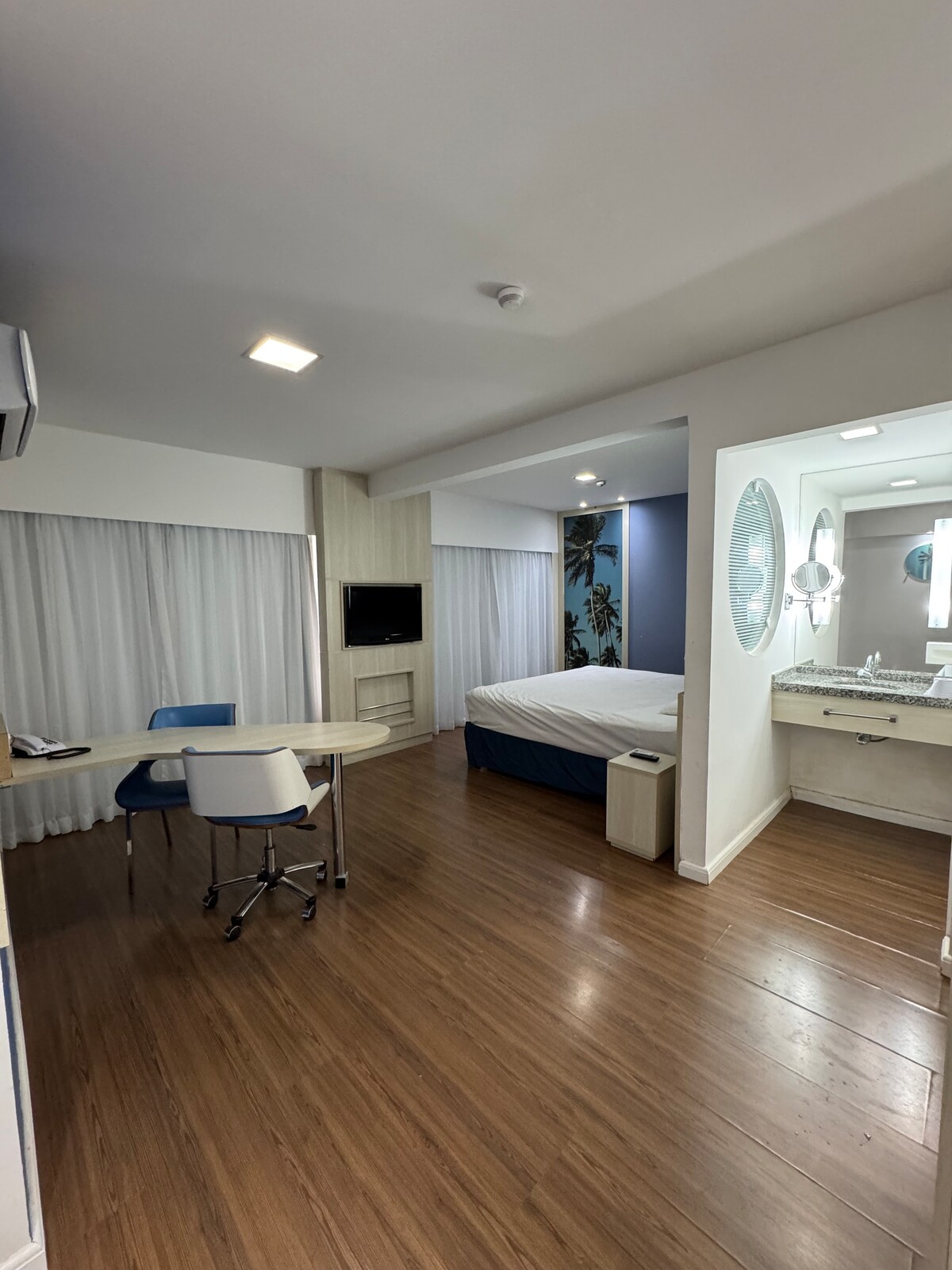 Piso 1806 en el Hotel Transamérica Prestige, construido pensando en los más mínimos detalles para que el huésped tenga una excelente estancia. Ofrece comodidad, modernidad y sofisticación. Se encuentra ubicado frente al mar, en la playa de Boa Viagem, en uno de los paisajes más bellos de la costa de Pernambuco. Nuestro espacio cuenta con todos los elementos necesarios para su comodidad, desde microondas, minibar, cafetera, Smartv con Netflix, Internet Wi-Fi 240 Mega. Está cerca de centros comerciales, mercados, polo médico y restaurantes.