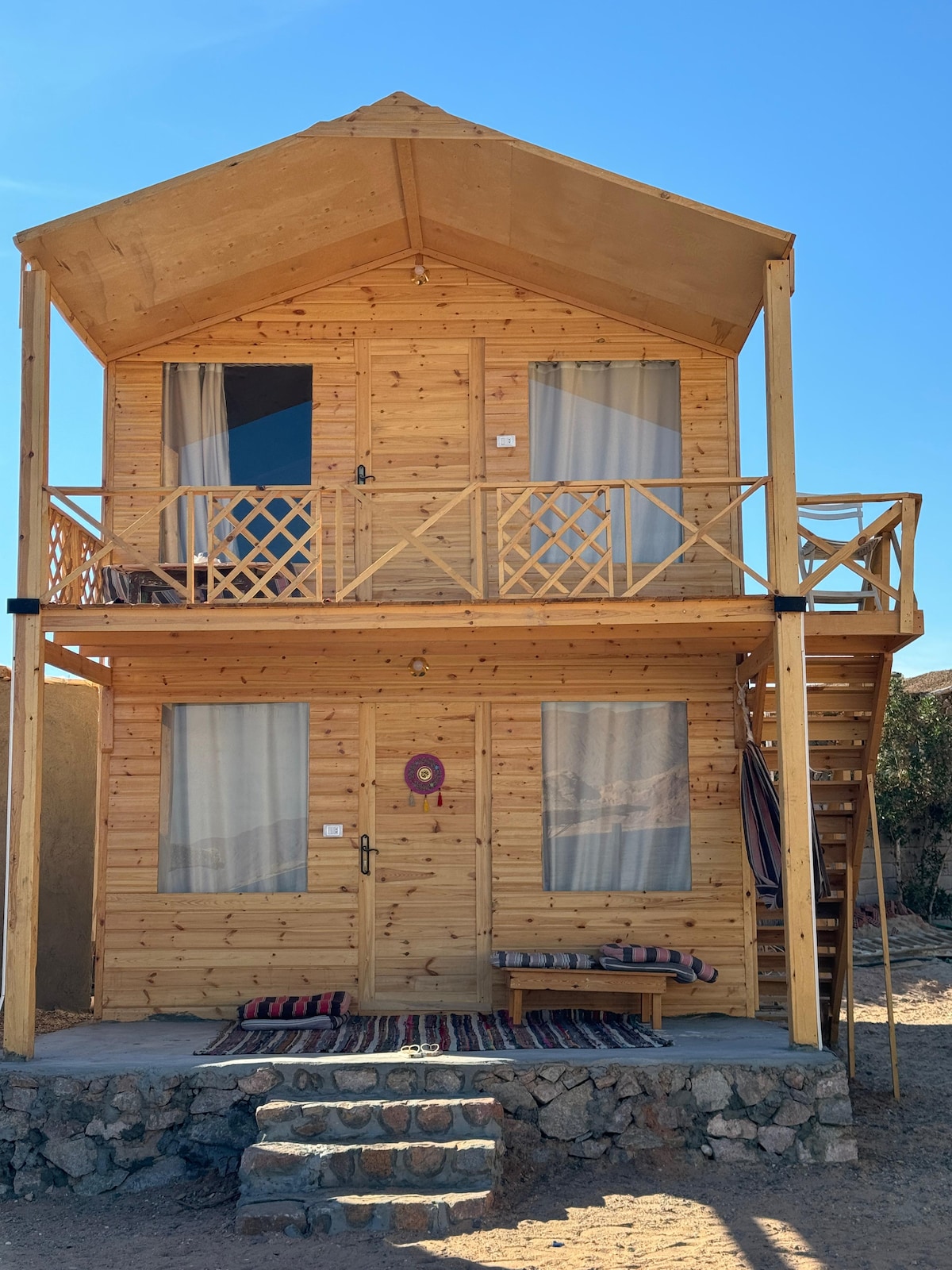 Alojamiento en cómodo banglow con vistas al mar en un campamento seguro