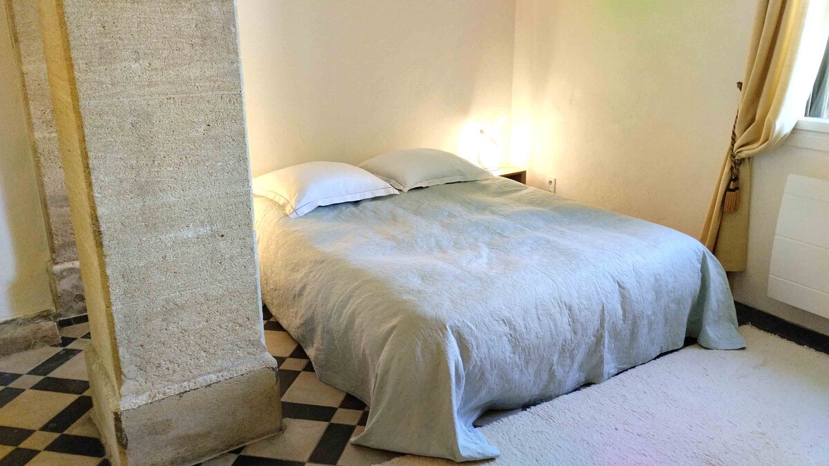 Dependencia de una masía provenzal del siglo XVII, explotación agrícola de producción de aceite de oliva. Le Pigeonnier es una vivienda de una sola planta independiente de la masía con un baño equipado con una ducha italiana, un dormitorio con una cama doble, un comedor cocina, una hermosa sala abovedada antigua sala de caza y un porche.
