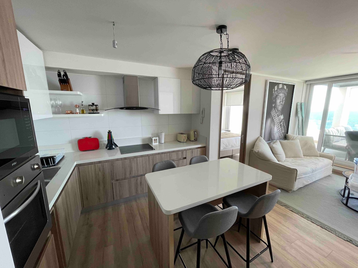Bienvenidos a Costa Encanto • Refugio Boutique • Reñaca Vive una experiencia frente al mar y disfruta de un elegante apartamento boutique con terraza privada en subida el Encanto, con una espectacular vista al mar en pleno Reñaca & déjate envolver por el relajante sonido de las olas 🌊 , con un diseño contemporáneo y todas las comodidades para una estadía inolvidable, a pasos de la playa, restaurantes y vida nocturna. ¡Reserva y siente la magia de Reñaca