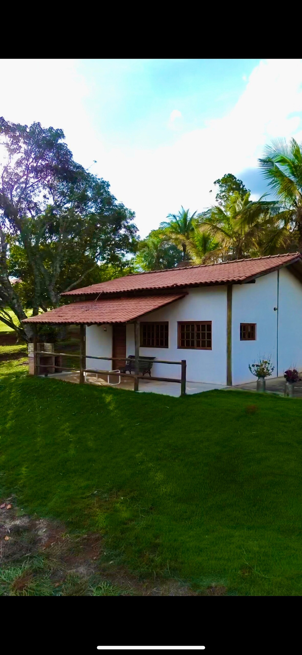La casa tiene una terraza con una mesa y una amplia vista, una chimenea interna para los días fríos, una piscina para refrescarse en el calor, así como una hermosa y acogedora suite principal con un delicioso balcón, rodeado de naturaleza, muchas aves y árboles frutales, un verdadero paraíso, el paseo en lancha rápida es la guinda del pastel. La casa está rodeada por una cerca de alambre de púas, por lo que si piensas en traer una mascota y es una fugitiva, es bueno preocuparse, ya que pueden escapar por debajo de la cerca.