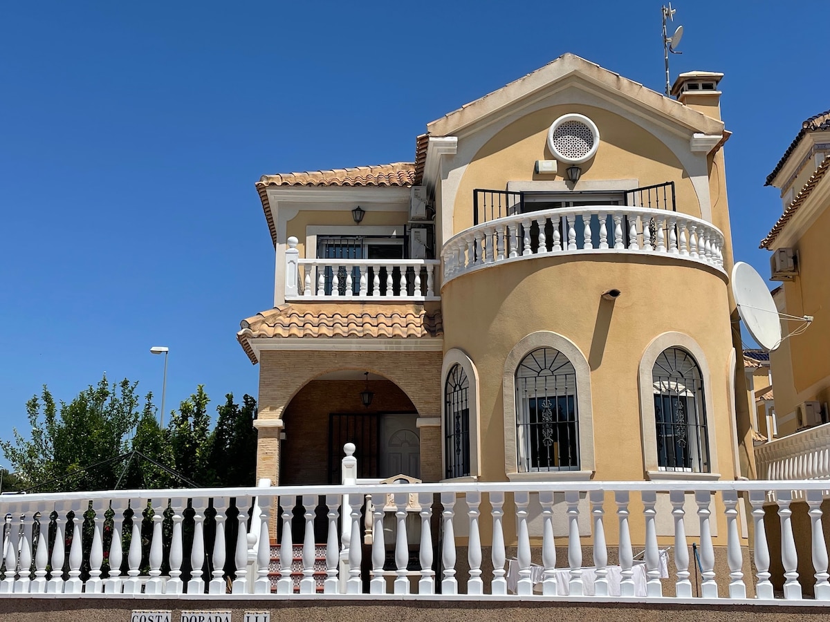 Fantástica villa independiente ubicada en una ubicación perfecta a solo unos minutos caminando de los servicios locales, como Mercadonna, La Fuente y El Galan Comercial Area. Ubicada justo sobre la ronda en El Galán, esta villa independiente de la Costa Dorada III disfruta de una buena parcela con jardines en la parte delantera y lateral que proporciona comedores al aire libre y la puerta trasera del jardín conduce a la magnífica piscina comunitaria de roca que se encuentra en el centro de las villas independientes.