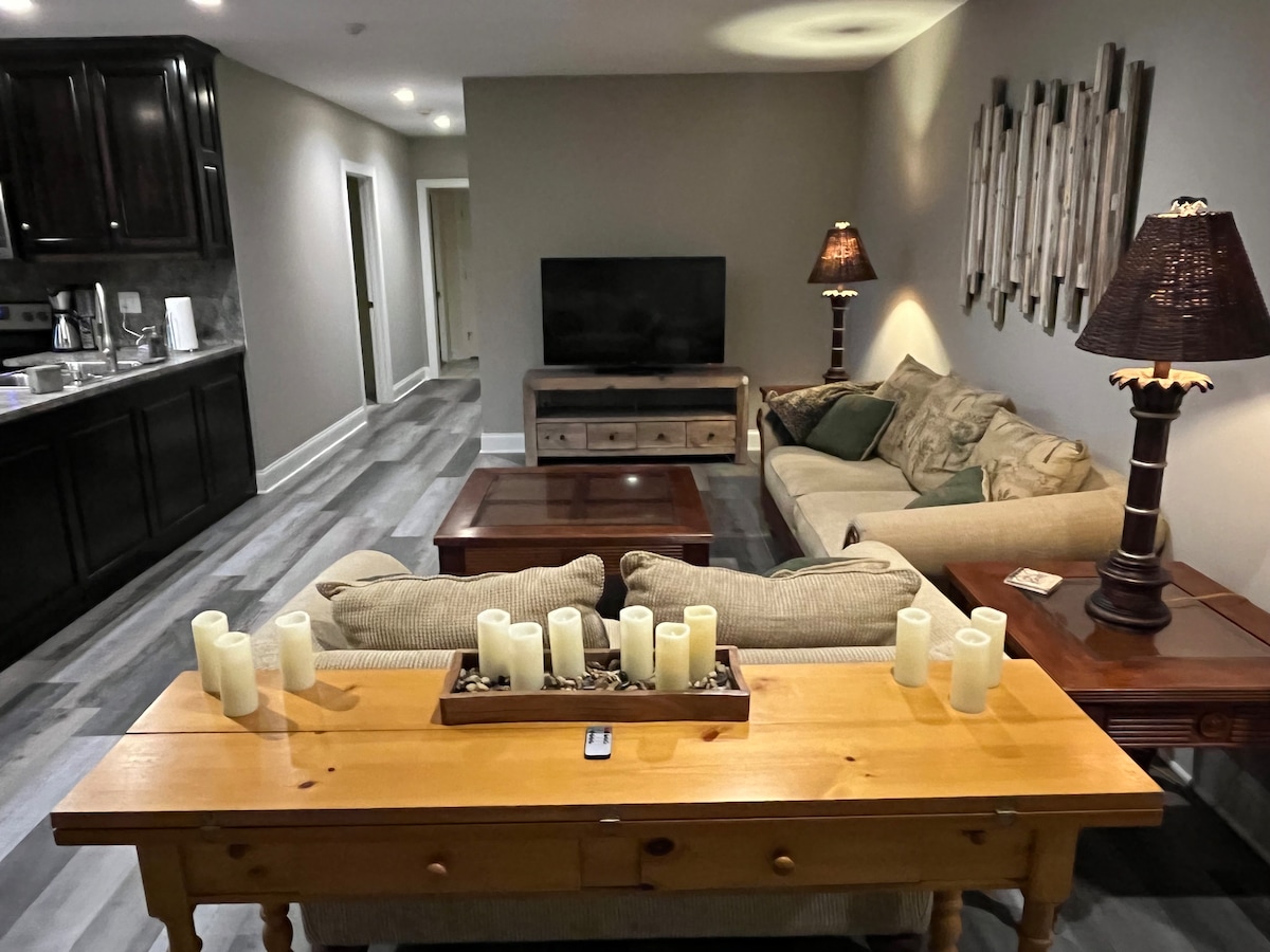 Limpia, cómoda, espaciosa y privada, esta suite de invitados bellamente decorada es el hogar perfecto lejos de casa para tu alojamiento de trabajo o placer. ¡Baño recién renovado y cocina americana para comer! Los muebles de madera hechos a mano, los paneles de madera de castaño y la chimenea de leña de gas le dan al espacio una acogedora sensación de cabaña. A pocos minutos de los destinos populares de Lenoir (Caldwell Medical Center, Broyhill Civic Center), con fácil acceso a Hickory, Morganton, Blowing Rock y Boone.