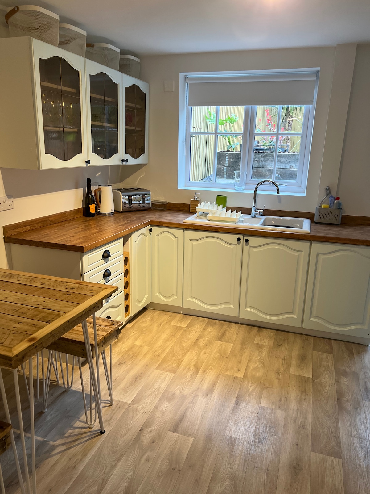 Nuestro alojamiento se encuentra en el pueblo de Rhuddlan, cerca de una iglesia y un castillo del siglo XIII, el río Clwyd, las colinas de Clwydian, las playas de Rhyl y Prestatyn y la autopista de North Wales (A55). El tranquilo e histórico pueblo tiene pequeñas tiendas locales, salones de té, pubs, restaurantes y comida para llevar. El moderno anexo de la planta baja es privado, con su propia puerta principal, vestíbulo, dormitorio con 2 camas individuales, baño con ducha y pequeña cocina americana. Es ideal para parejas, aventureros solitarios y viajeros de negocios.
