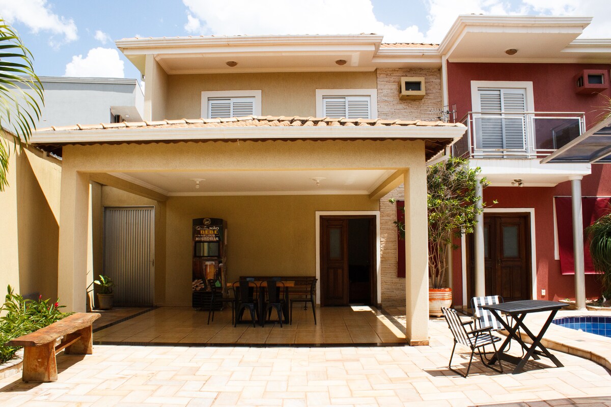 Casa amueblada con 4 dormitorios con aire acondicionado y una completa zona de ocio con piscina y parrilla. Totalmente seguro e ideal para reuniones familiares y fiestas. Estamos en uno de los barrios más nobles de Ribeirão Preto, el Jardín Botánico. Nuestra ubicación ofrece un fácil acceso para aquellos que asisten a graduaciones y eventos, ya que está a 10 minutos del Centro de Eventos de Taiwán y a 15 minutos del Espacio de Golf. La casa está en una región con fácil acceso a mercados, centros comerciales y restaurantes.