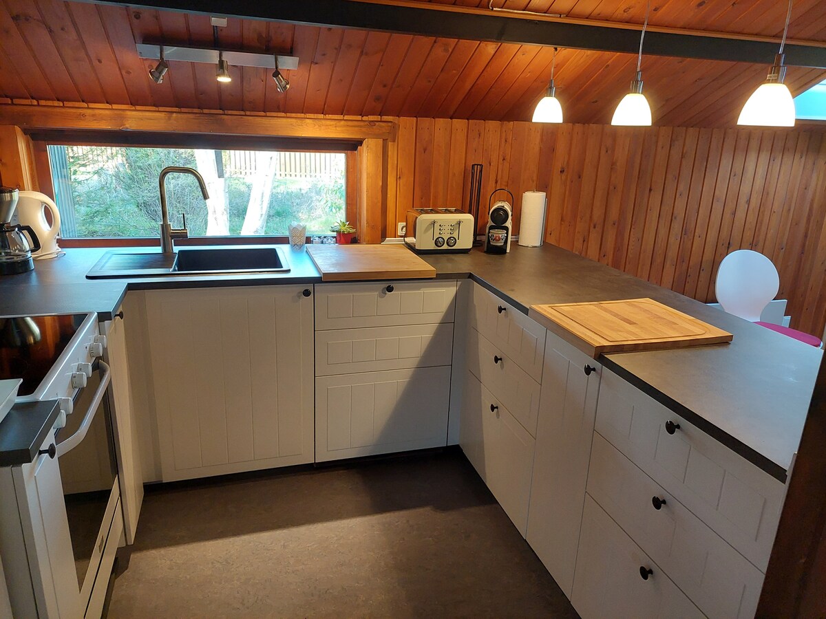 Esta acogedora casa de vacaciones está situada en un entorno pintoresco en la zona de vacaciones más meridional de Dinamarca. Cuenta con una bomba de calor de bajo consumo y una estufa de leña que aporta calidez y comodidad en las noches frías. La cocina bien equipada incluye nevera con congelador, horno de convección, cuatro fogones de vitrocerámica, microondas, cafetera, máquina Nespresso, tostadora y lavavajillas. Dos televisores inteligentes con Netflix y Prime Video: utiliza tu propia cuenta.