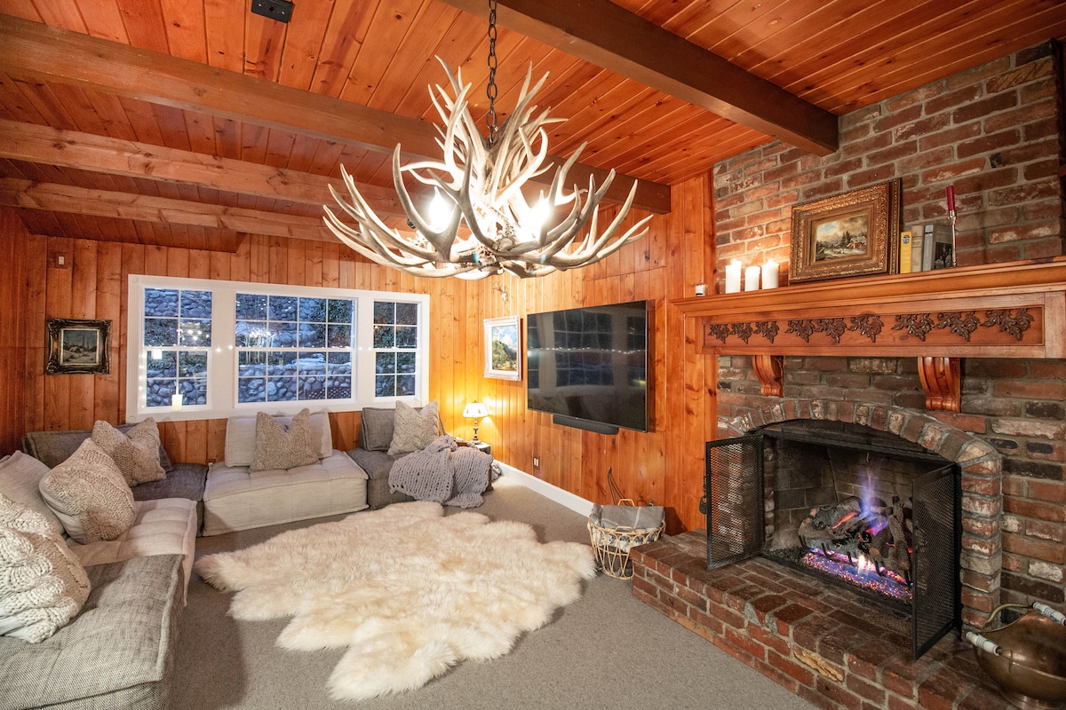 Disfruta de una escapada invernal en Alpine Vista, un chalet con dos suites tamaño king, seis camas, wifi de 2 Gb y suelos recién remodelados. Disfruta de los pinos cubiertos de nieve enmarcados a través de ventanas del suelo al techo, relájate junto a la acogedora chimenea de gas y disfruta del tranquilo bosque invernal. Perfecto para familias, escapadas románticas y retiros de trabajo remoto que buscan una escapada tranquila a la montaña. A pocos minutos de Snow Valley, SkyPark en Santa's Village y snow tubing, con trineo a solo unos pasos del chalet.