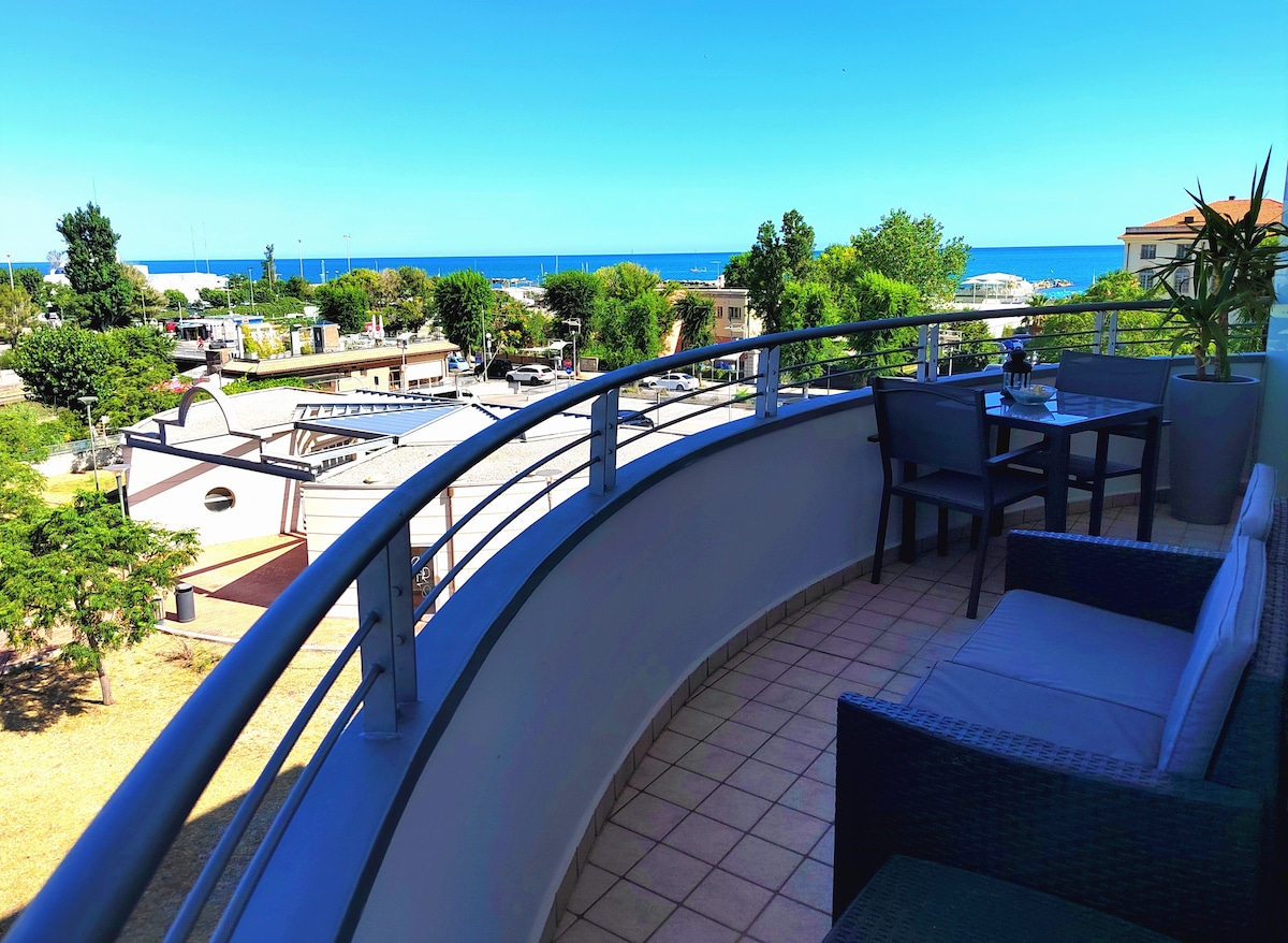 Hermosa vista al mar de dos habitaciones con vistas al nuevo muelle de Rímini. En la zona más exclusiva de Rímini, ofrecemos un apartamento de dos habitaciones con dormitorio de matrimonio y vistas al mar con sofá cama, baño, fabulosa terraza con vistas al mar desde la que disfrutar de aperitivos y cenas al atardecer. A 50 metros de la playa. A menos de 1 km del centro histórico y del pintoresco pueblo de San Giuliano. En una zona llena de servicios, restaurantes, bares. Fácil acceso, ascensor. Estacionamiento gratuito y de pago en el área.