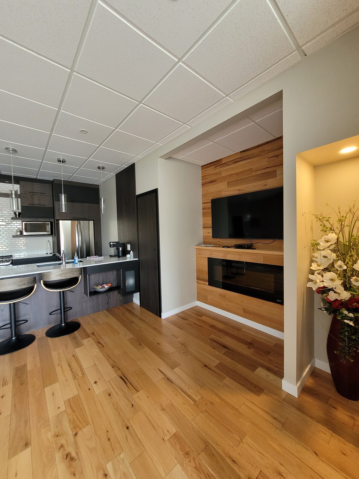 En familia, en pareja o con amigos disfrutará de la proximidad al centro de la ciudad de Rimouski con un spa cubierto. El alojamiento es accesible a través de una entrada independiente con 2 plazas de aparcamiento, encontrará 2 dormitorios (1 cama king y 1 cama doble), 1 salón con cama plegable doble, una zona de juegos para niños, una zona de teletrabajo, 1 comedor separado con chimenea de propano, 2 aparatos de fitness (bicicleta y cinta de correr), una cocina y un baño totalmente equipado.