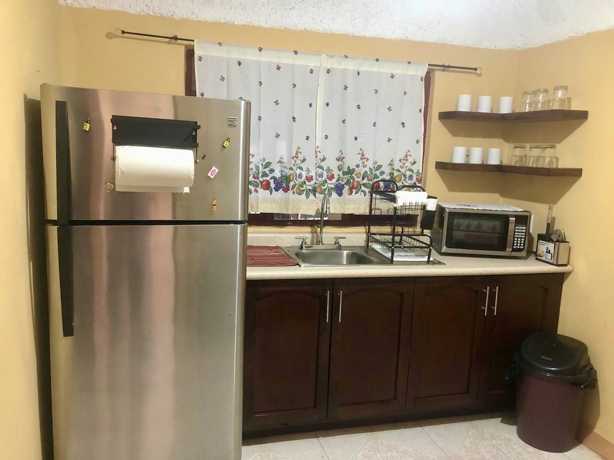 Relájate y acomódate en este espacio hecho para que pases una estancia de lujo con ton todas las amenidades necesarias para tu comodidad , y al mismo tiempo disfrutar del tranquilo y relajante jardín con el que cuenta la propiedad , y todo esto dentro de la ciudad , ubicado en una calle privada con reja y cámaras de vigilancia , a unas cuadras del centro y la alameda , podemos facturar tu estancia sin ningún problema , cuenta con aire acondicionado y cama king así como un sofá cama