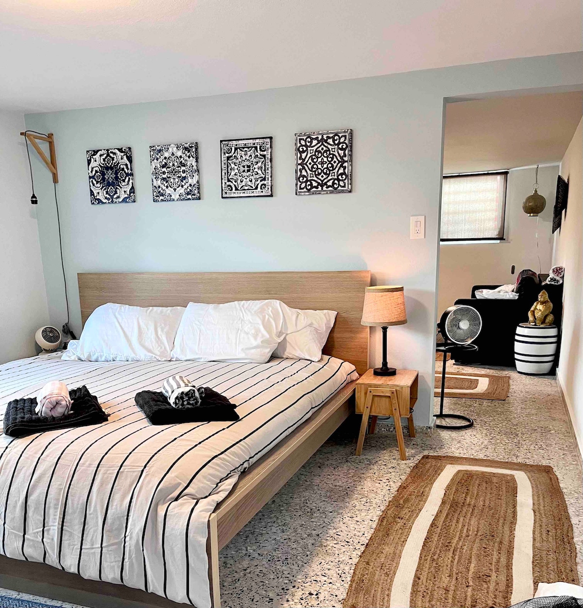 A 1 milla de la ciudad y las playas. - Tranquilo y tranquilo, perfecto para parejas y amigos que viajan. Unidad privada recién renovada con un ambiente boho-chic con suelos de hormigón pulido y cama loft +cómoda saca el sofá Relájate con el sonido de las ranas coqui, los grillos y un cielo lleno de estrellas desde las hamacas del porche. El espacio compartido para 2 unidades incluye cocina moderna equipada con Vitamix, lavavajillas, rincón para comer y trabajar, ducha caliente al aire libre, hamacas de porche, sofá de dos plazas, estante para tablas, uso gratuito de mis 2 SUP'S.