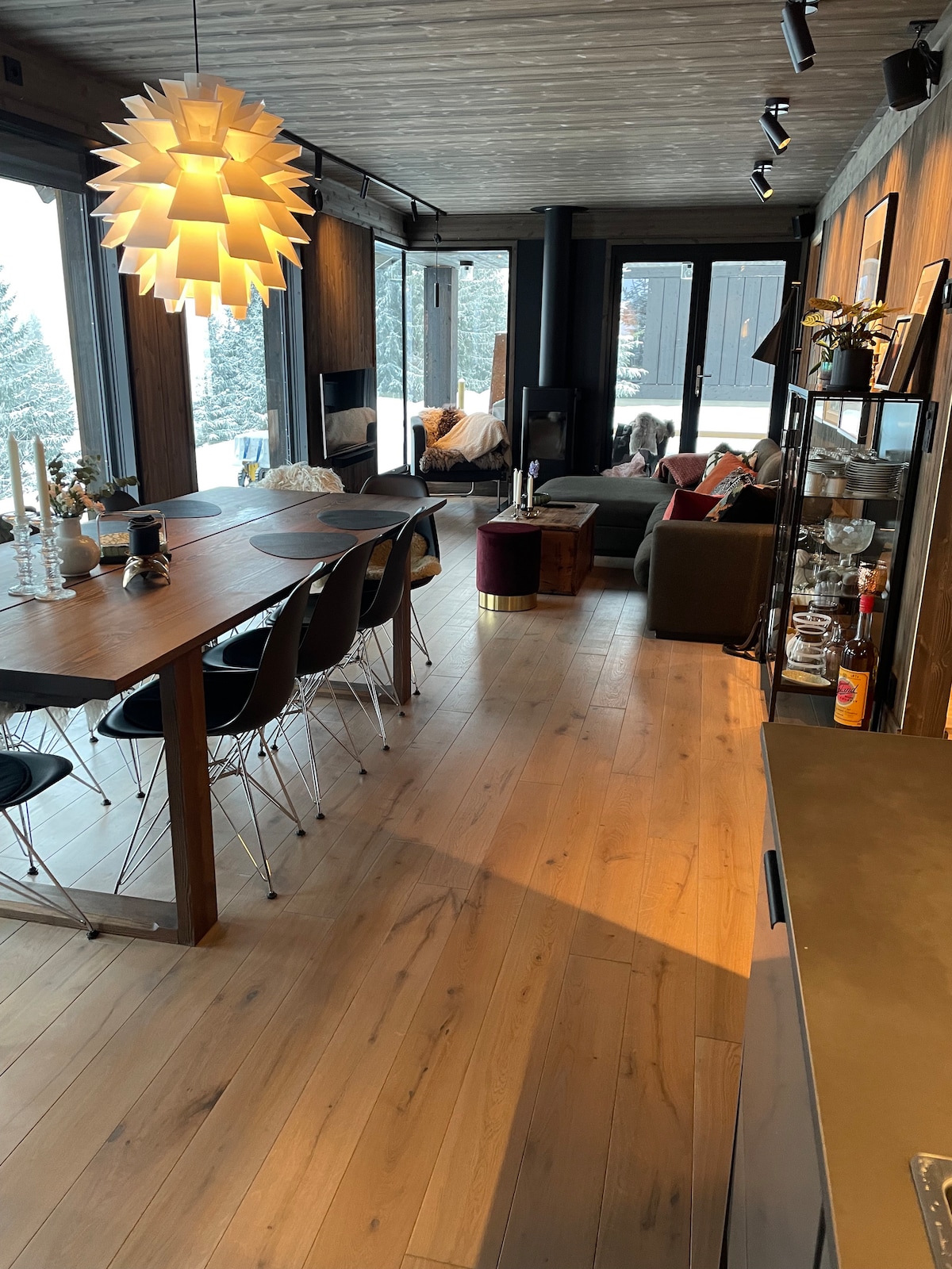 Cabaña nueva con acceso directo a las pistas de esquí y opciones de lujo. Muy bien equipada con vistas únicas a las montañas y las pistas alpinas. La cabaña está ubicada justo al lado de la pista de entrenamiento y la reconocida pista de la Copa del Mundo en el lado este de Kvitfjell. Grandes ventanales de suelo a techo. 2 baños + aseo, así como sauna. 4 dormitorios: - El dormitorio principal tiene una cama doble de 180 cm con baño privado - El dormitorio 2 tiene una cama doble de 160 cm - El dormitorio 3 tiene una litera con una cama de 140 cm abajo y una cama individual de 75 cm arriba - El dormitorio 4 tiene una litera con 150 cm abajo y 80 cm arriba.