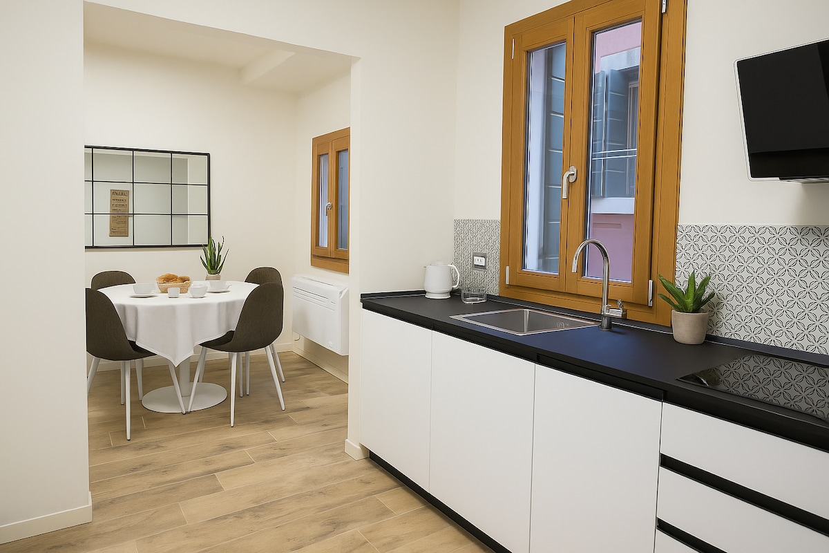 Apartamento completamente reformado en 2020, compuesto por una moderna cocina totalmente equipada con lavadora y lavavajillas, zona de comedor, baño con ducha y un amplio dormitorio. Dispone de aire acondicionado, calefacción por suelo radiante, wifi y todas las comodidades para disfrutar de una estancia fabulosa en Venecia. Está situado en una zona comercial típicamente veneciana, donde encontrarás tiendas de todo tipo frecuentadas principalmente por los venecianos.